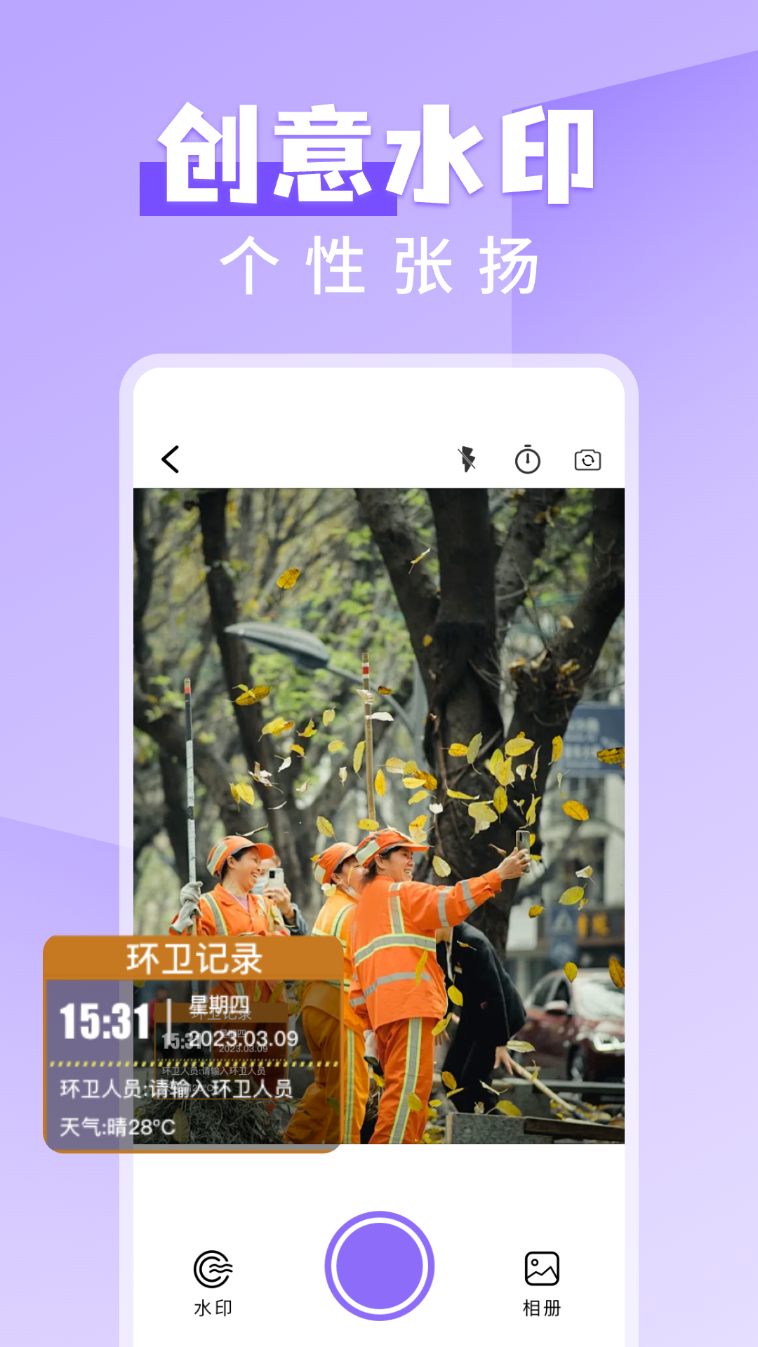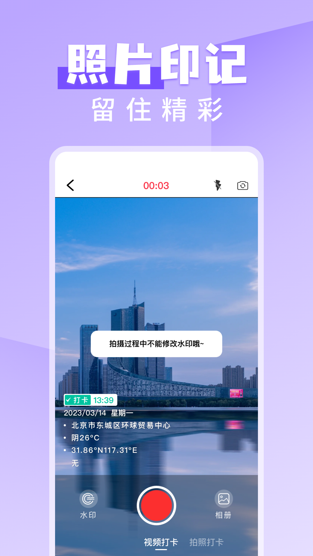1.地理位置标记:应用可以自动获取当前位置信息,并将其作为水印添加到照片上。
