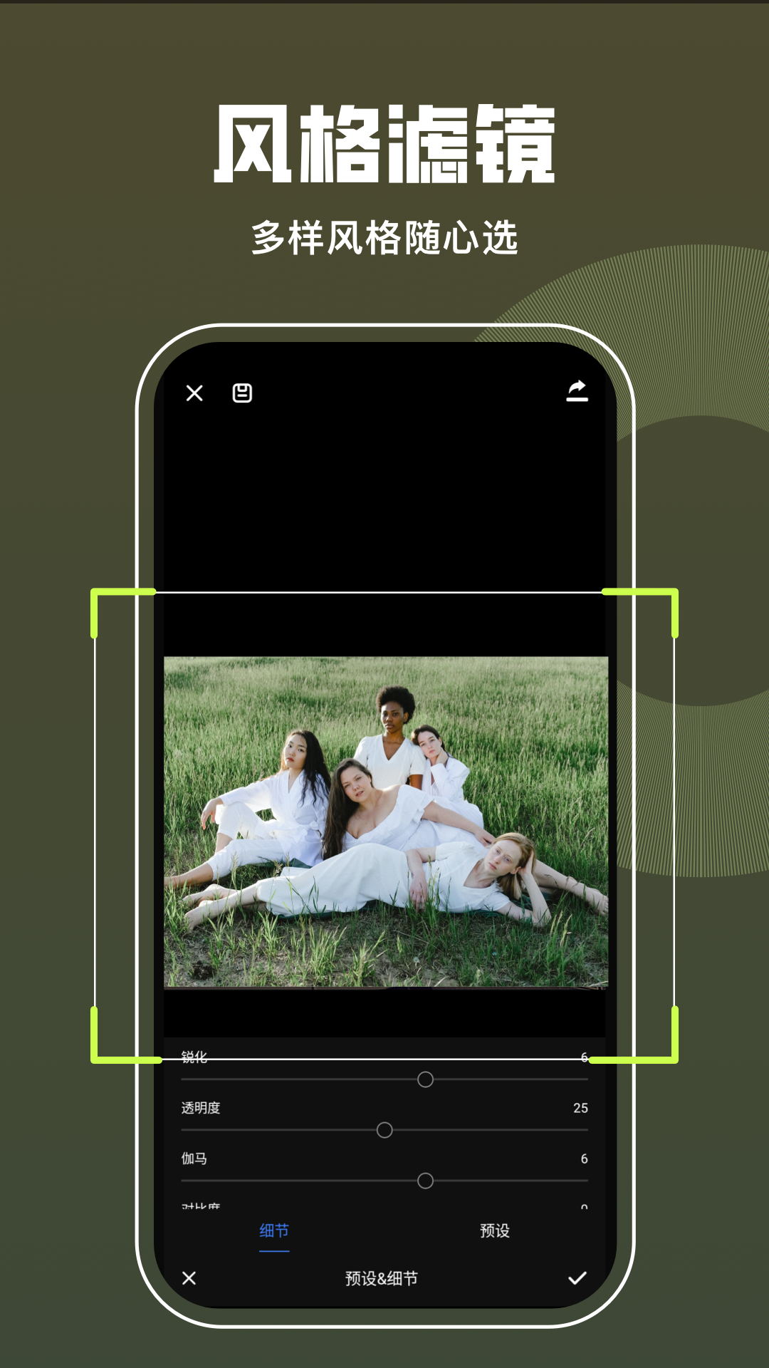 更有高质量的艺术滤镜!数十种超梦幻的图片叠加滤镜特效,包括经典、华丽、优雅、回忆、复古等风格。您可以从中挑选一款心仪的颜色滤镜,为图片增添独特的色彩。无论是使用免费预设、相机滤镜,还是图片编辑器,都能快速便捷地进行修图。