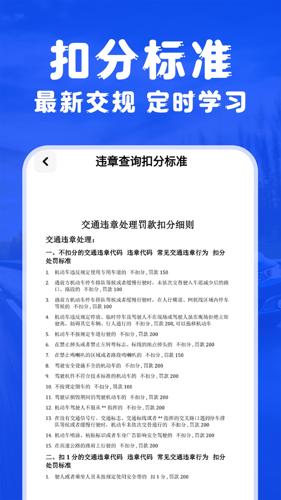 扣分标准:提供详细的交通违章扣分规则,让您清楚了解每项违规行为的后果。