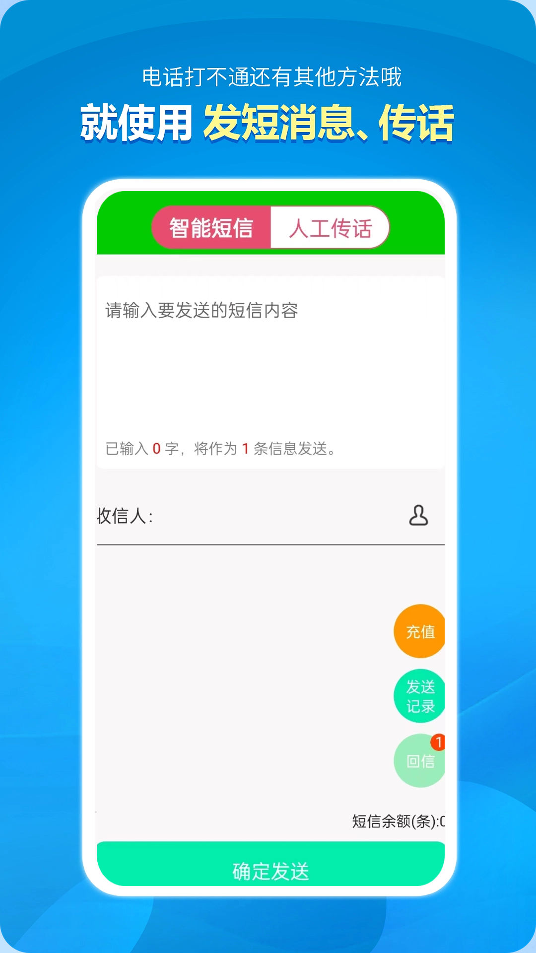 智能消息:当您不想打电话或者电话无法拨通的时候,还能够发送短消息哦。