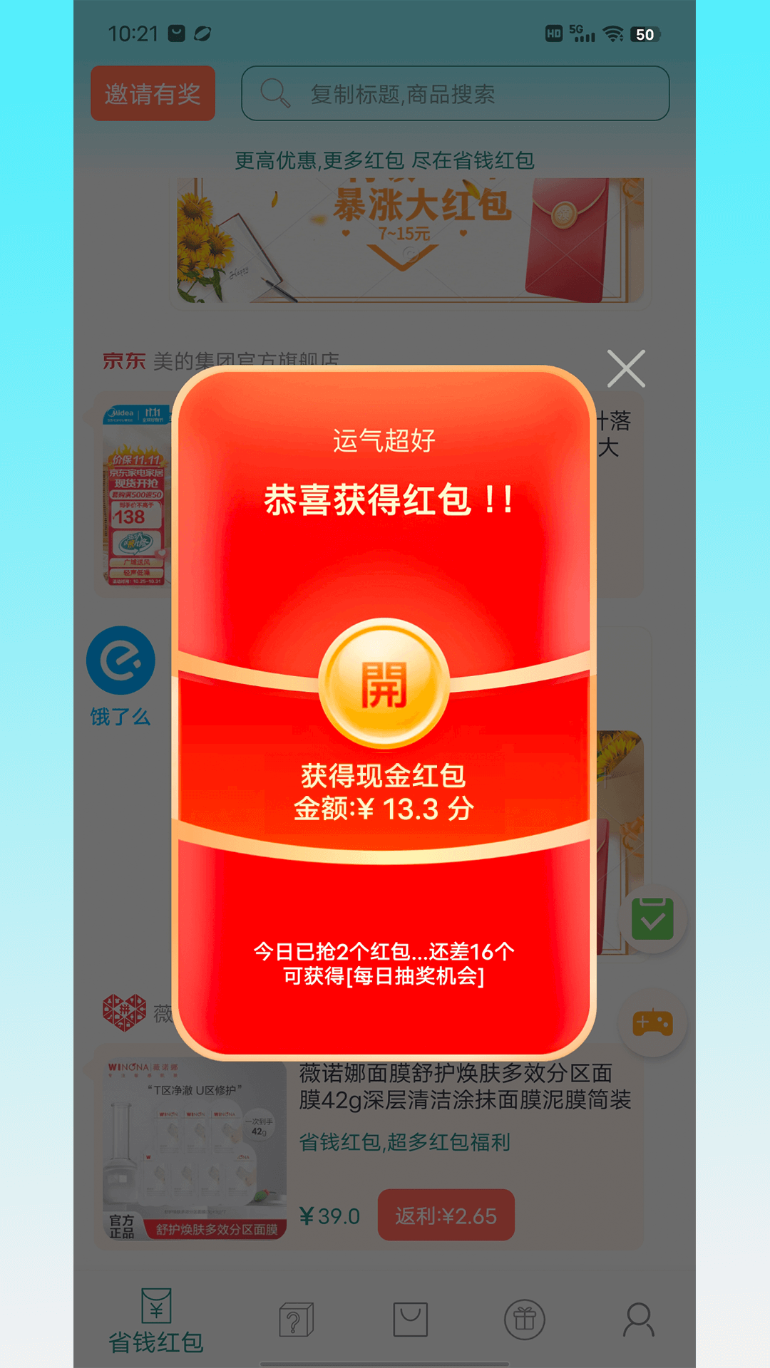 【购物返现】 省钱红包可以获得购物优惠券和购物返利!