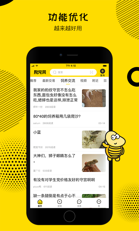 更值得一提的是,爬宠网提供了一个在线交流的空间,让您有机会与众多爬宠大神们互动。大家可以分享各自的养宠经验、趣闻轶事等。如此丰富的功能,各位爬宠爱好者可不要错过哦,赶快下载爬宠网App,加入这个充满趣味的爬宠世界,与大神们尽情交流吧!