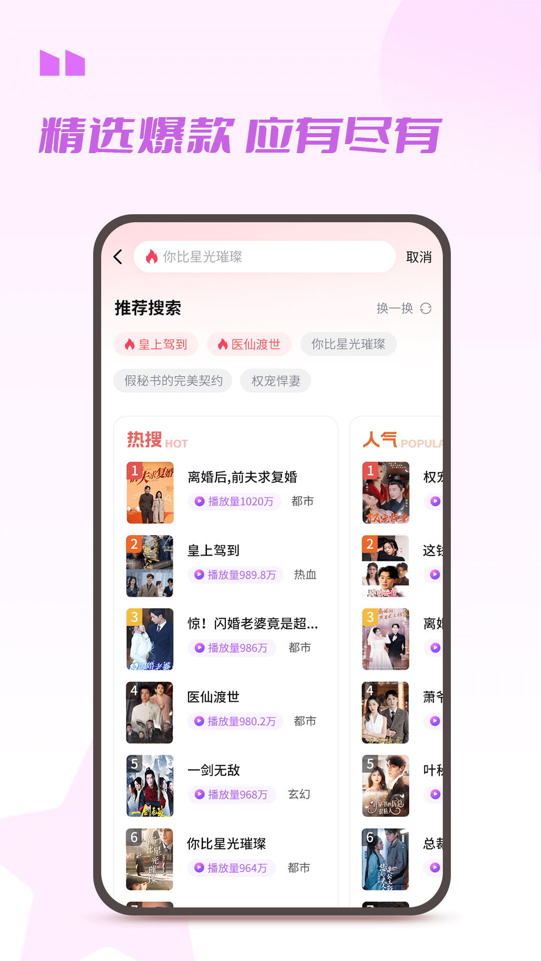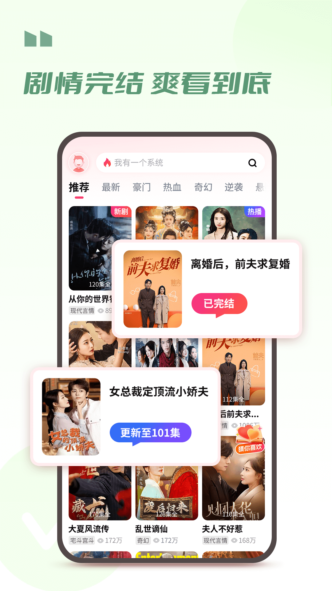 【畅享全集】无需忍受漫长的更新等待,在娱看短剧,您能够一口气将整部剧看完。