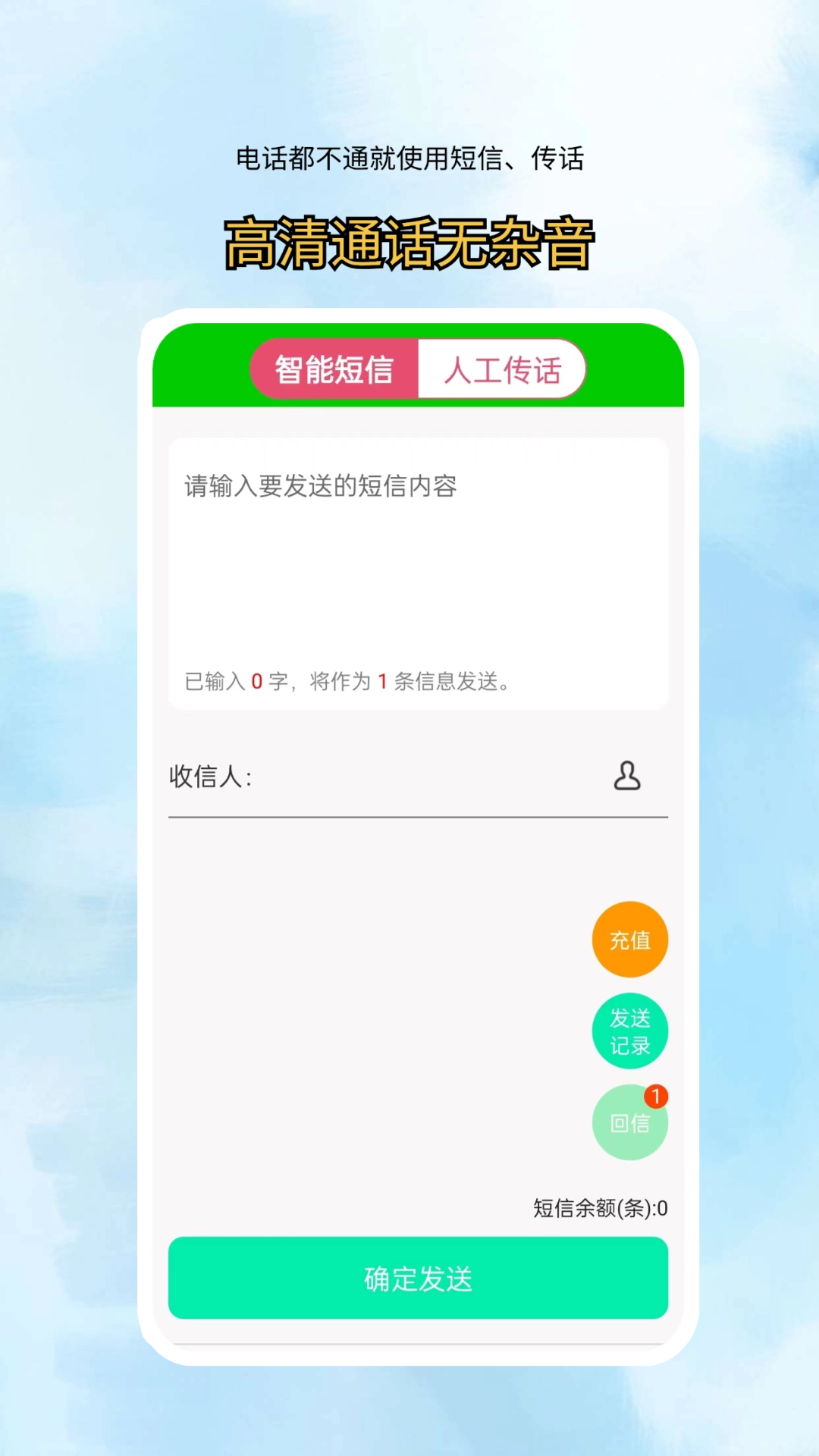 智能短信发送:当您不想打电话,或者电话无法拨通的时候,不妨尝试一下这个短信功能。它能完全确保安全隐私,信息严格保密。
