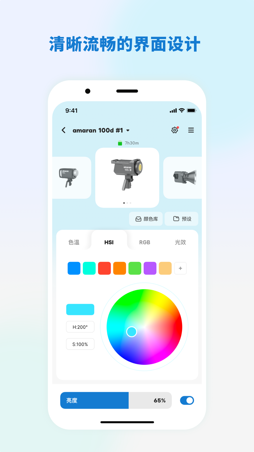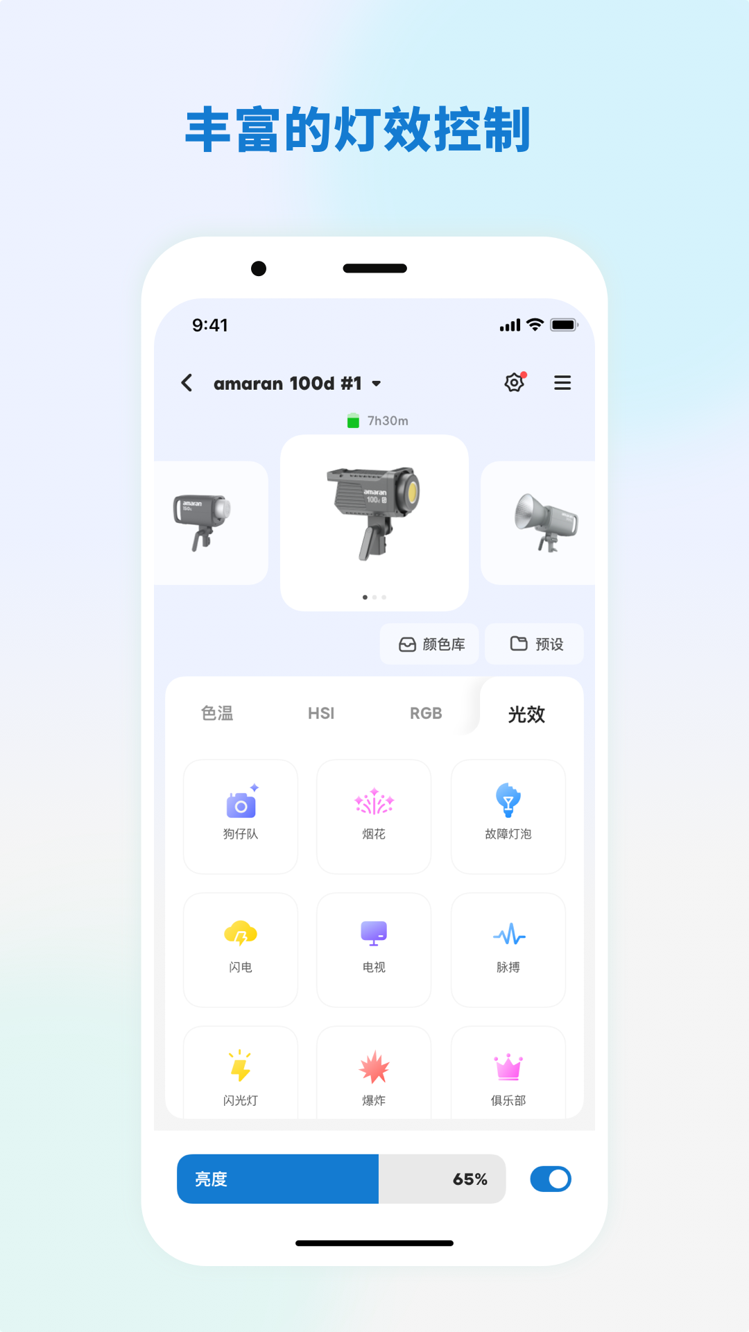 amaran APP具备众多丰富的功能,像灯光实时控制、批量灯具管理、自定义快捷操作以及一键保存灯光参数等,这些功能有助于您节约设置时间,畅快地投入创作。您还能直接在设备菜单中对灯具进行开关操作、调整亮度、查看状态,以及查看颜色和光效等。该程序是专为创作者精心打造的,是您创作之旅不可或缺的得力伙伴。