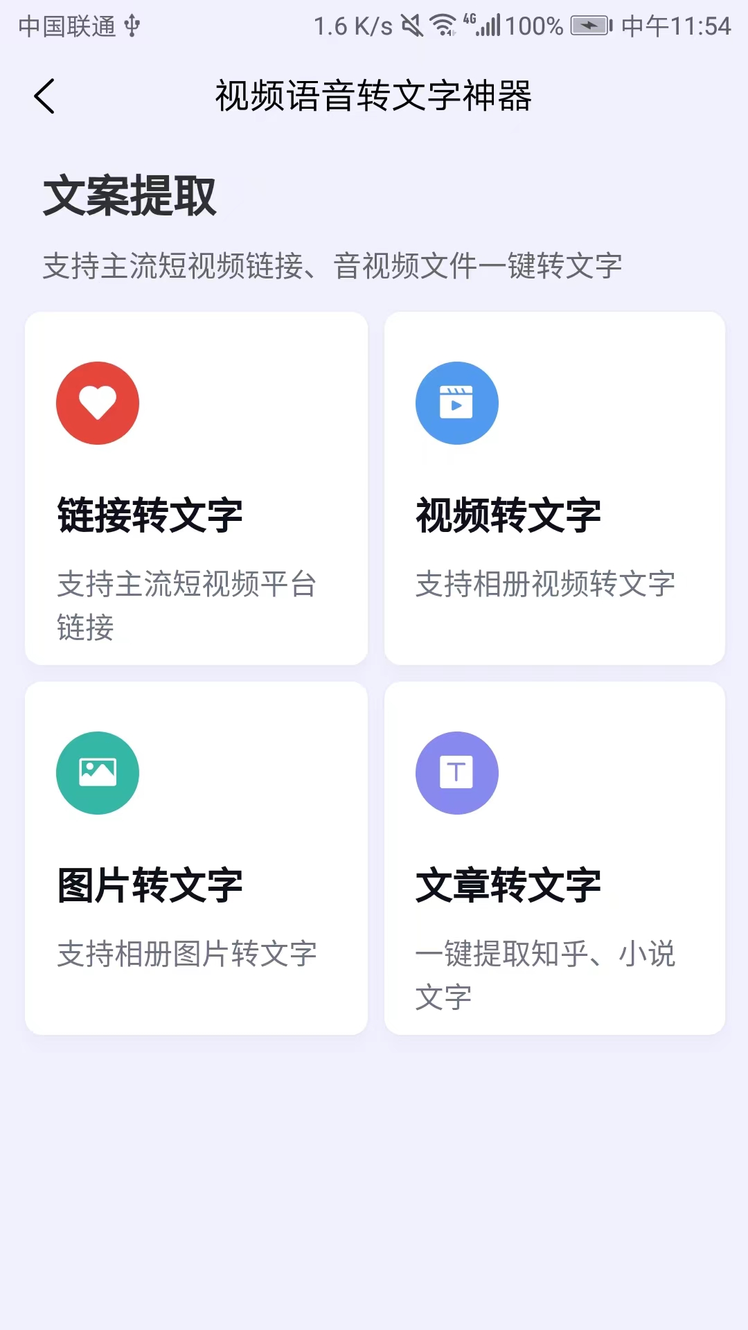 支持短视频链接转文字、语音转文字、音频转文字、录音转文字、图片转文字,可一键快速提取文字,一款专业的文案提取神器。