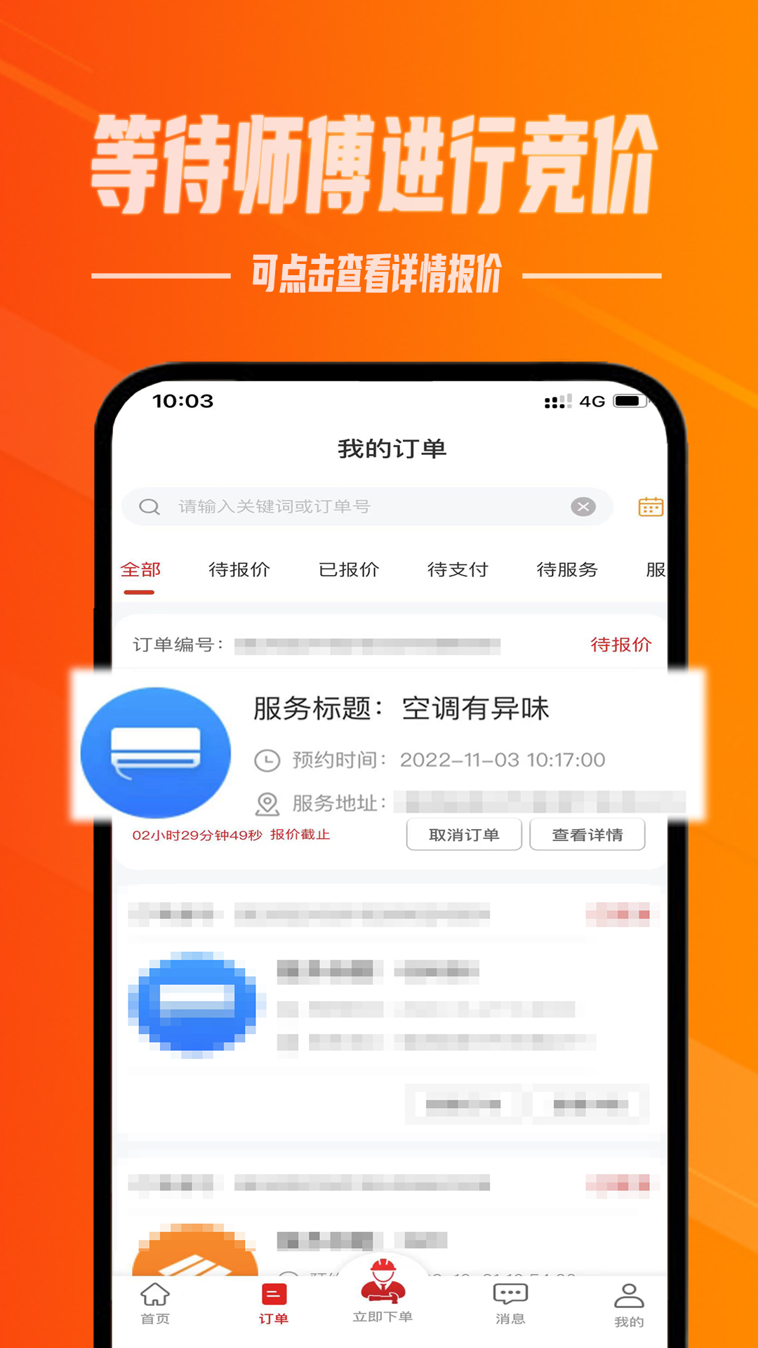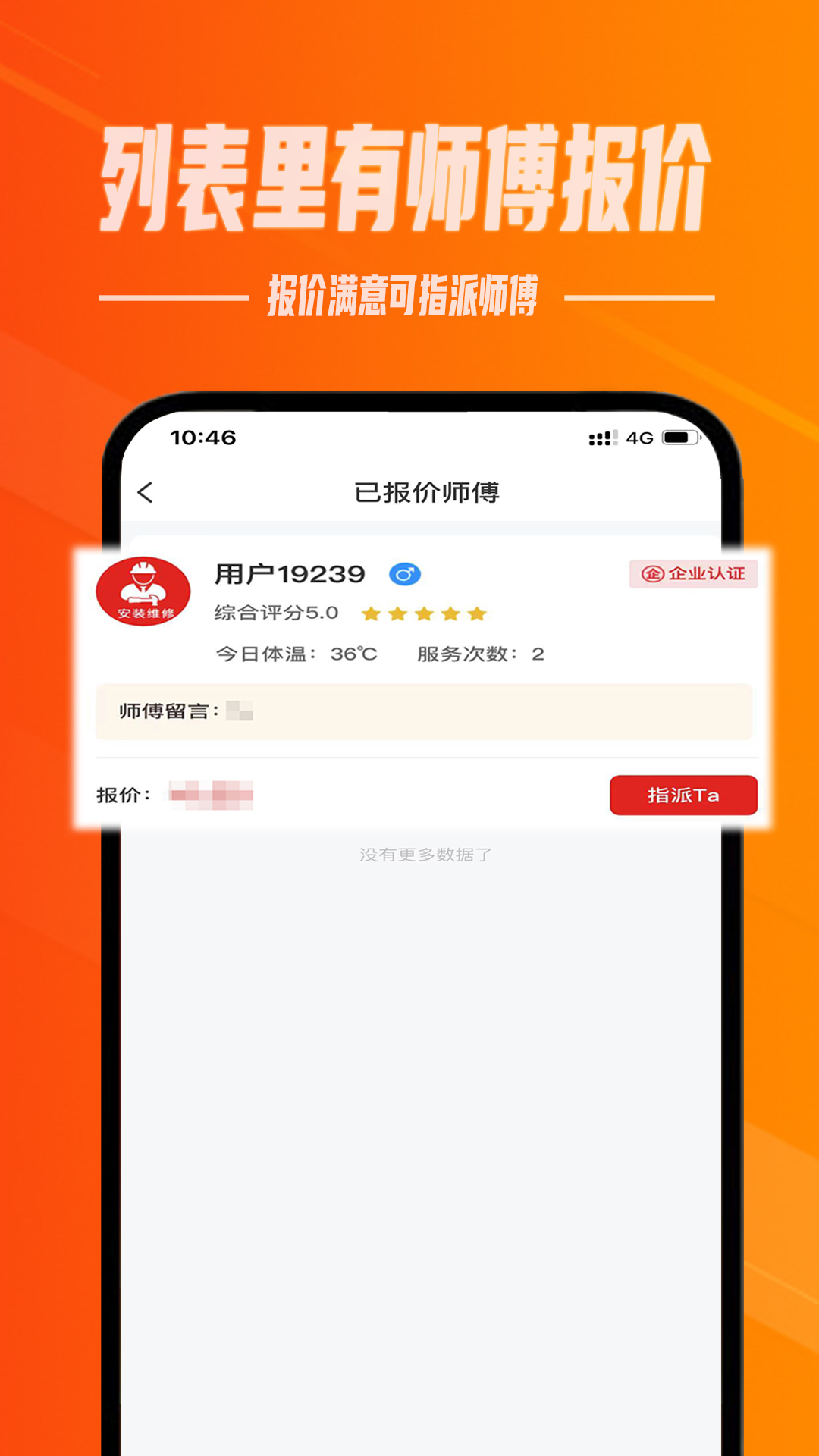 3、帮帮到家可以根据业务类型选择师傅,再确定上门服务的时间。