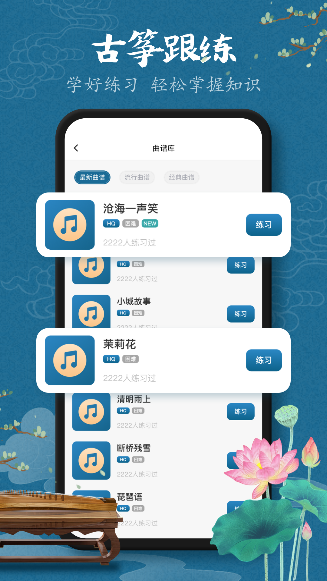 【古筝谱库】海量热门经典流行乐曲谱库,开始练习之旅快速提升水平