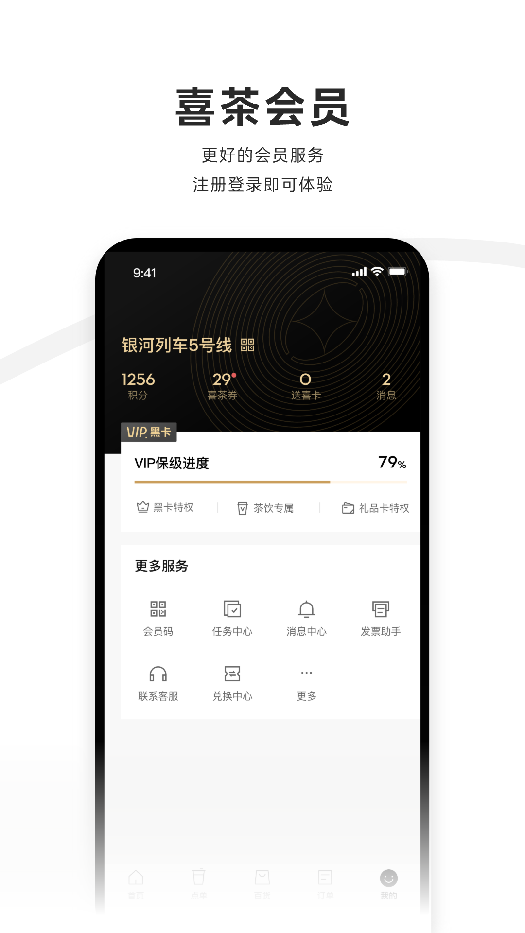 这里还有专属于您的喜茶星球,这可是您的会员空间。在喜茶星球里,喜茶钱包、积分商城、喜茶券等会员权益都能一站式享受。
