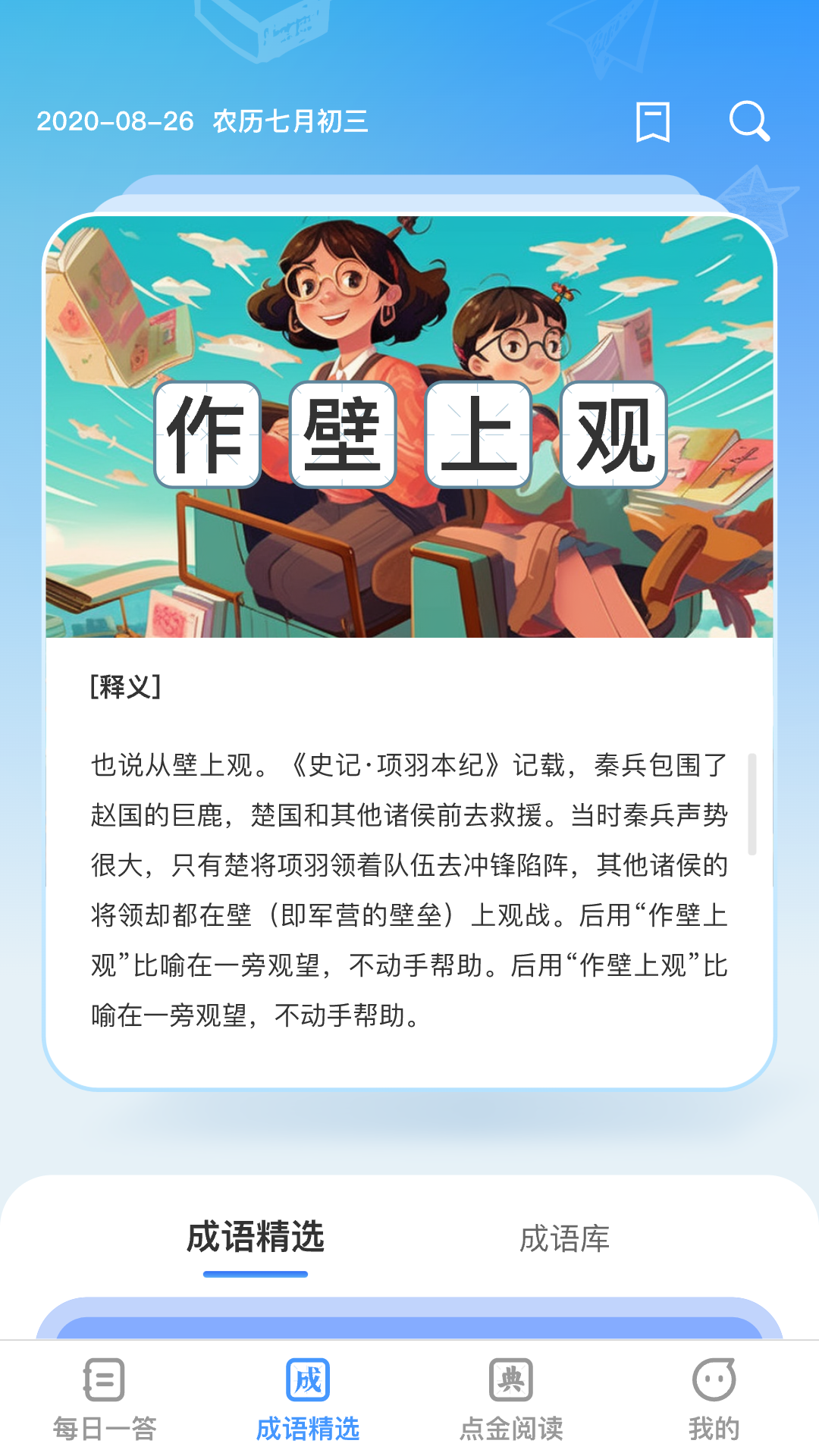 APP精心挑选众多成语内容,让您通过每日阅读不断积累知识,进而做到出口成章,逐步实现自身的不断进步。