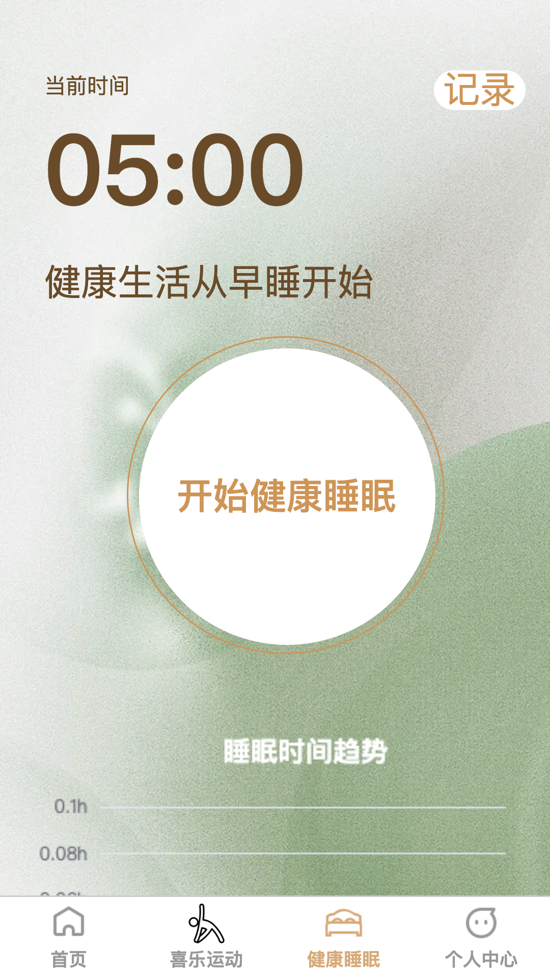 【健康睡眠】在健康睡眠部分,应用允许用户记录睡眠时间和趋势,帮助您分析和改善睡眠质量,以实现身心的全面健康。