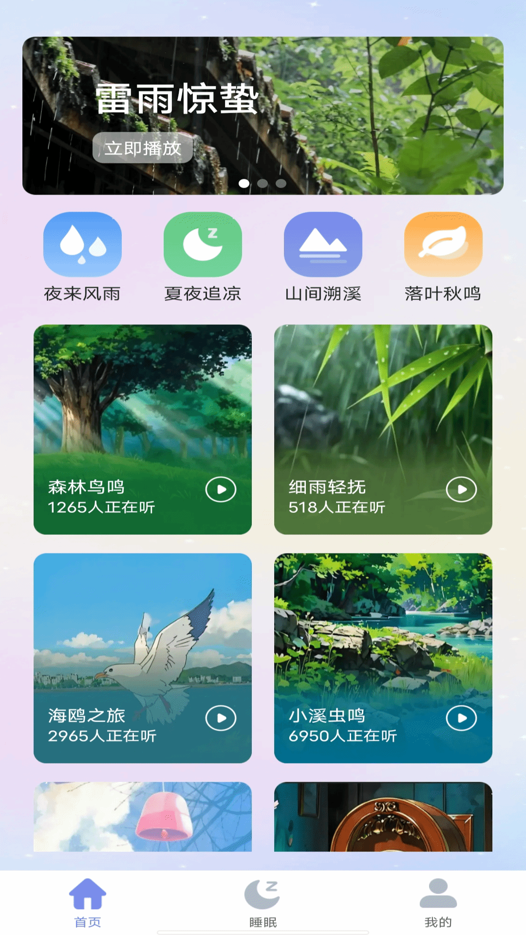 提供一系列精心挑选的催眠轻音乐,包括自然声音、古典音乐、电子音乐等。用户可以根据个人喜好和需求选择。