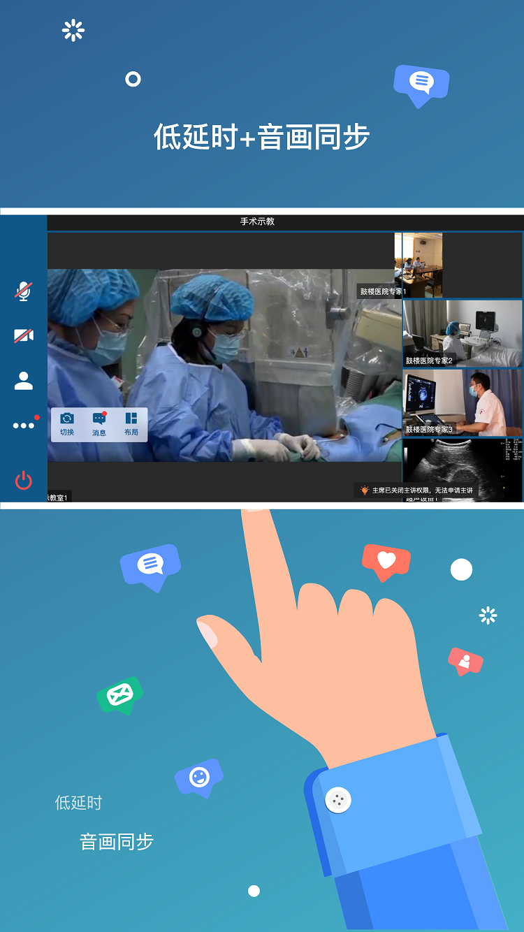 在医疗行业中,VIS能够满足各种各样远程通讯业务场景的实际需求,像是手术示教、视频会议、多学科诊疗(MDT)、查房会诊、影像诊断、数字化手术室等场景都涵盖其中。VIS具备多种视频会诊功能,例如音画同步、实时通讯以及多画面布局等。用户既可以使用VIS公有云业务,也能够与院内部署的VIS系统相配合,达成远程医疗相关的多场景业务,全方位为医疗各个场景的服务提供助力。