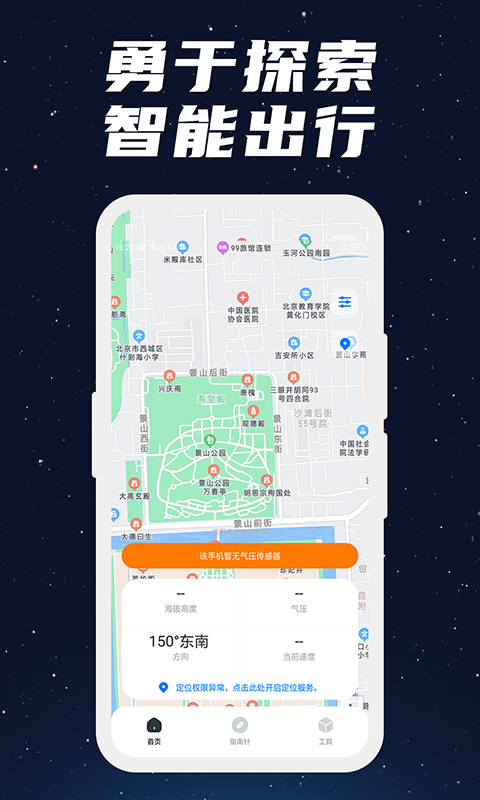 GPS海拔测量工具箱是一款多功能的户外导航与环境监测应用。它集成了指南针、GPS测速仪、精准指南针、大气压监测、高度测量等功能,为您在户外活动中提供一站式解决方案,让您的户外活动更安全、更便利。
