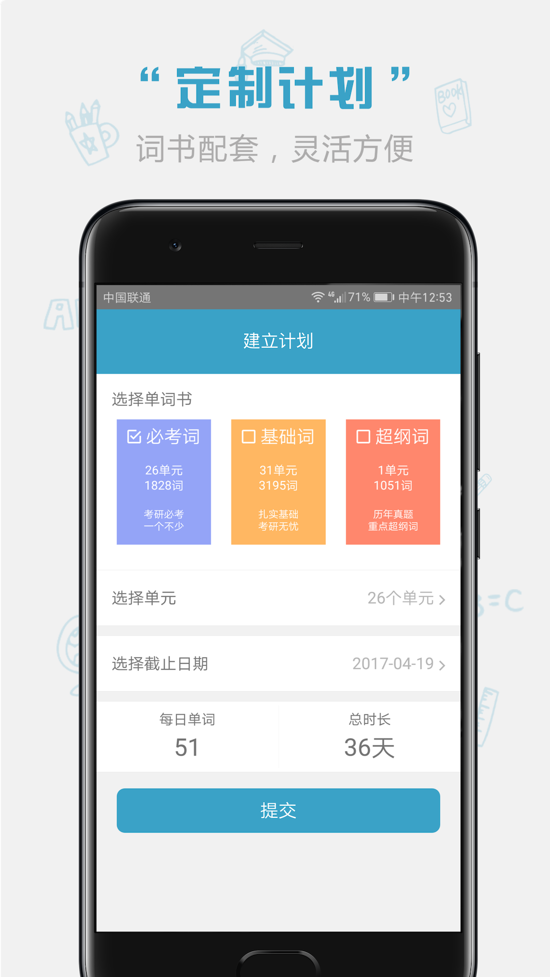 2. 调整计划:针对《【红宝书】考研英语词汇》中的必考词(共26个单元)、基础词(共30个单元)以及超纲词(A - D),用户能够依据自身实际情况灵活地制定学习计划。