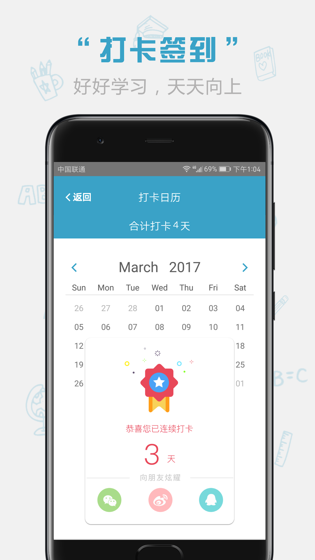 1. 打卡日历:每日进行签到,能够记录用户的学习情况。借助考勤功能,可有效督促用户坚持学习。