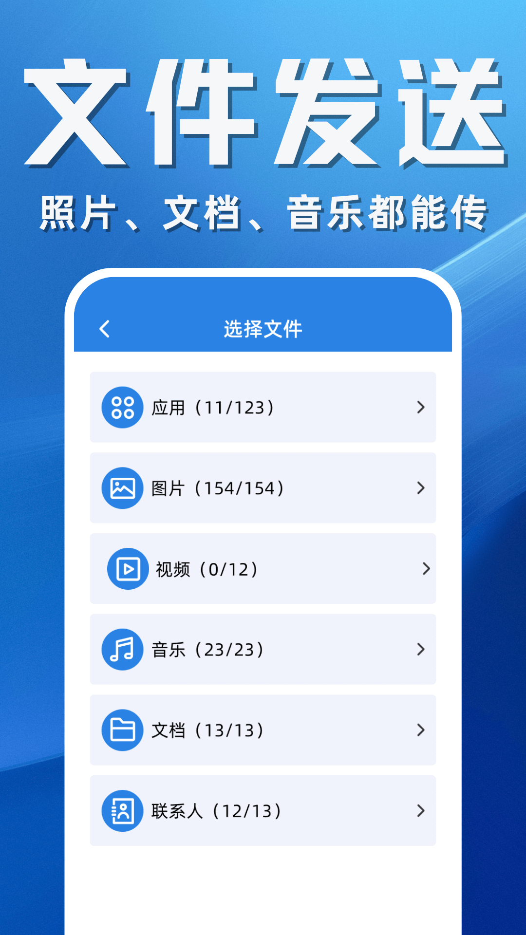 【兼容各类文件,随便传】支持把旧手机的照片、联系人、文件、音乐、视频、应用等多种类型的数据和文件转移到新手机