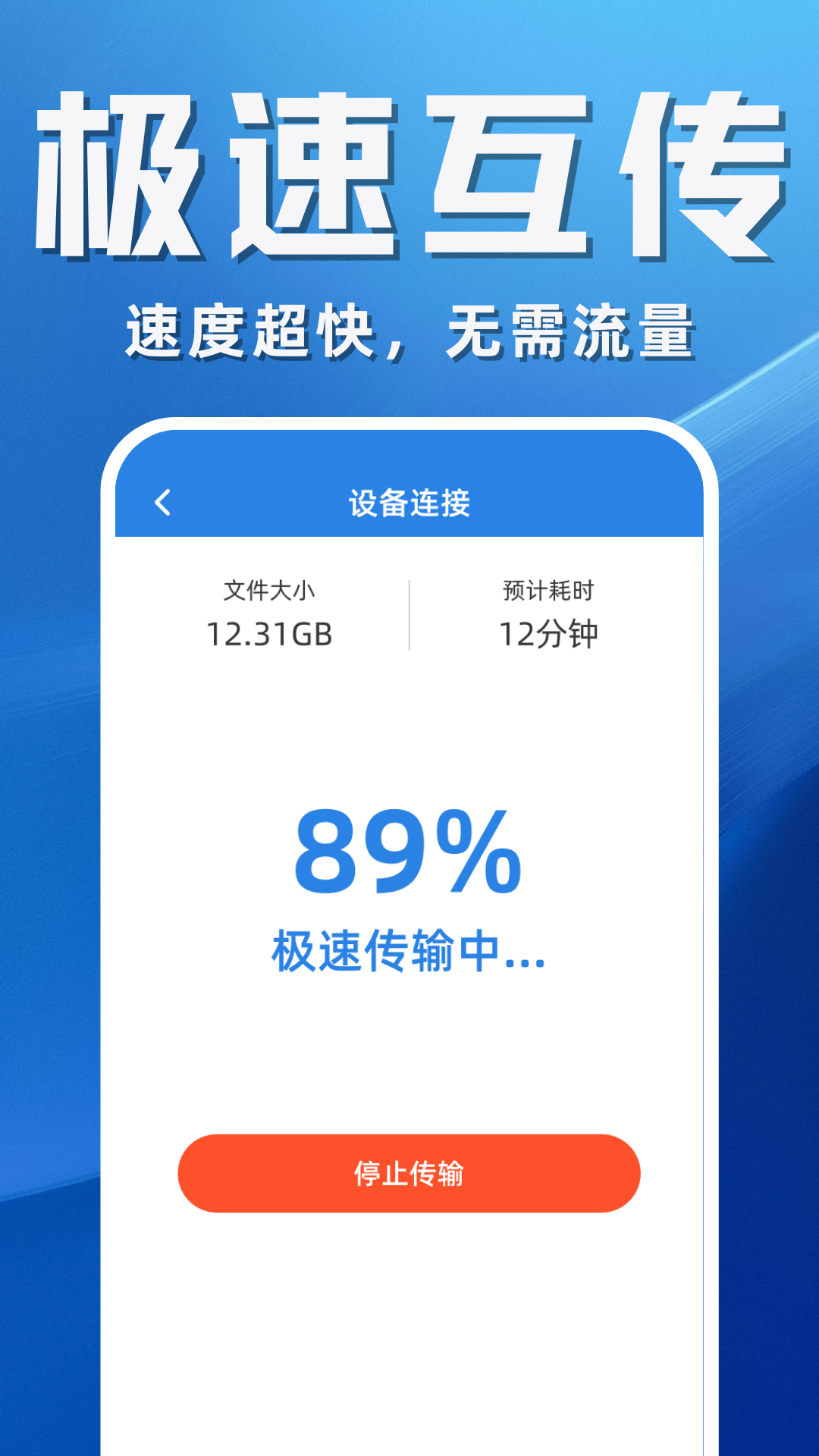 【扫码连接,零流量】不消耗手机流量,无需数据线连接,面对面扫码即传,稳定不掉线
