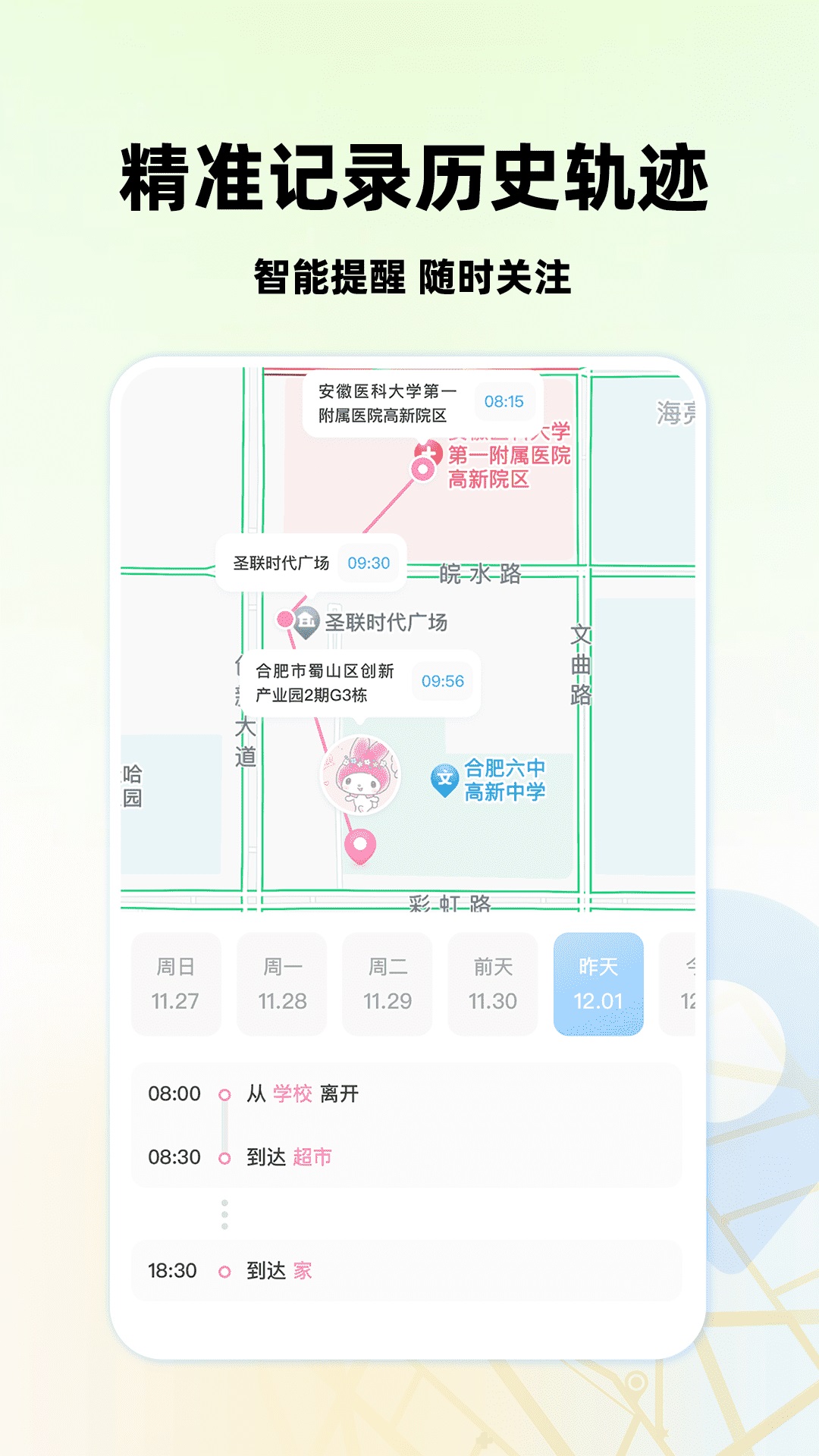 知晓TA在哪,去过哪,查找亲友位置,定位守护父母安全,防止ta走失。