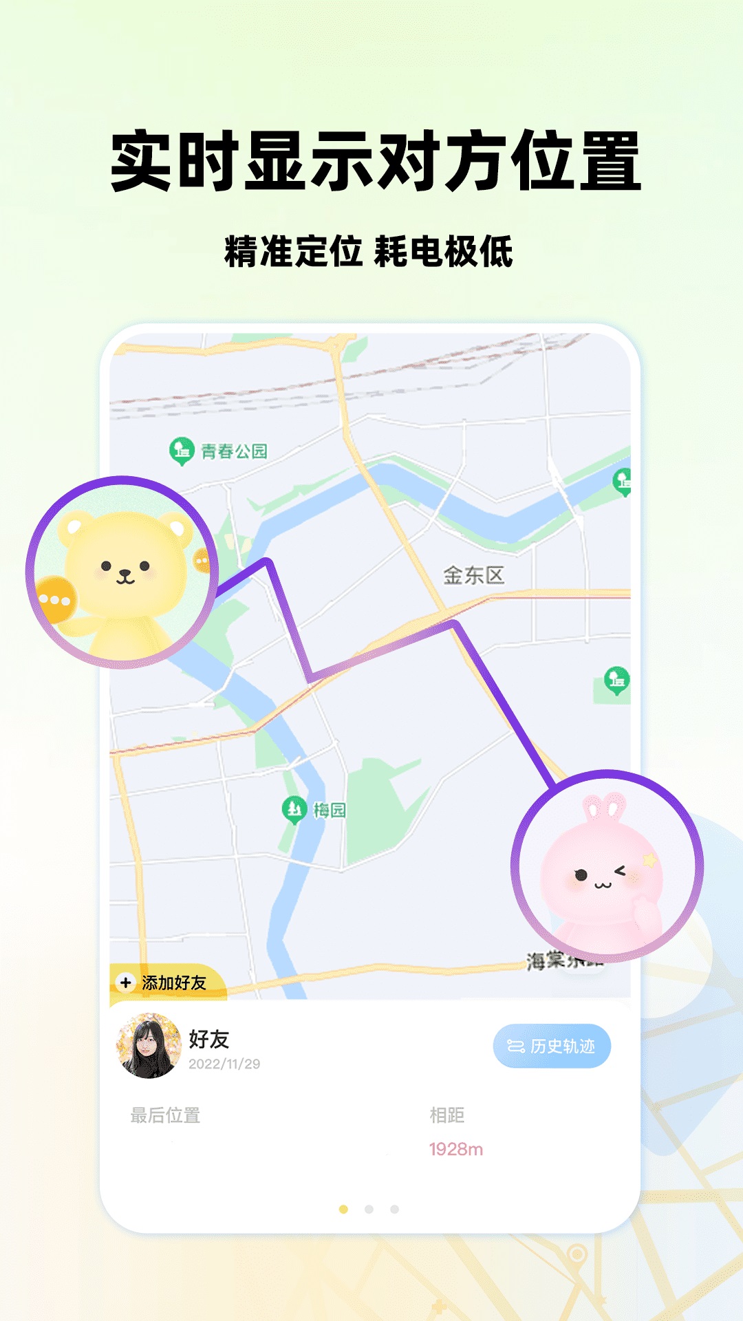 这款APP可提供实时位置查询,手机定位关心的人位置;通过手机定位亲友的历史位置、实时位置、历史轨迹。定位关心的人的位置,需要对方下载并同意,双方可以才能共享位置,帮助您更好的保护孩子、老人、伴侣、朋友的出行安全。