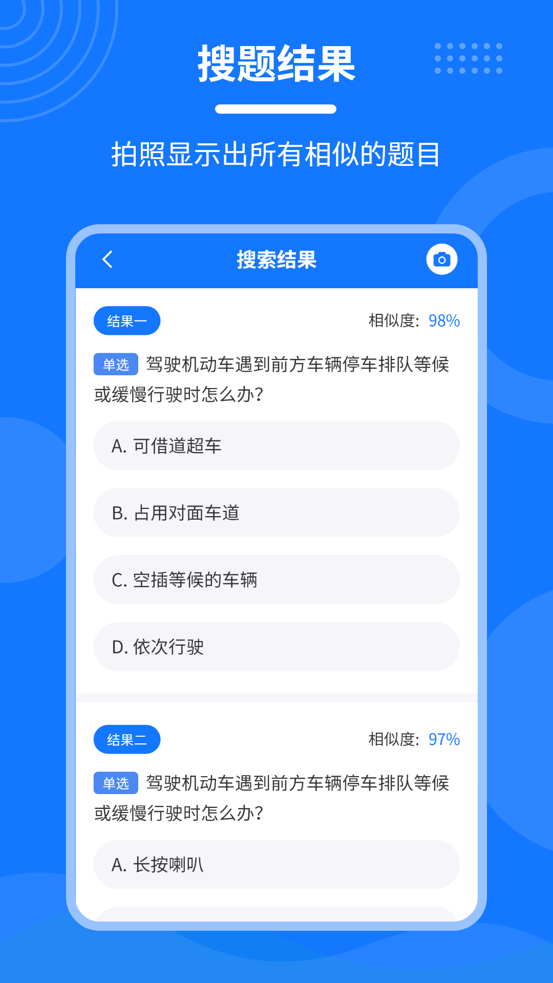 其中,【学法减分拍照搜题】功能可让考生在学习过程中快速理解试题,有效提高学习与考试的效率,为考生顺利通过考试给予强大的助力。