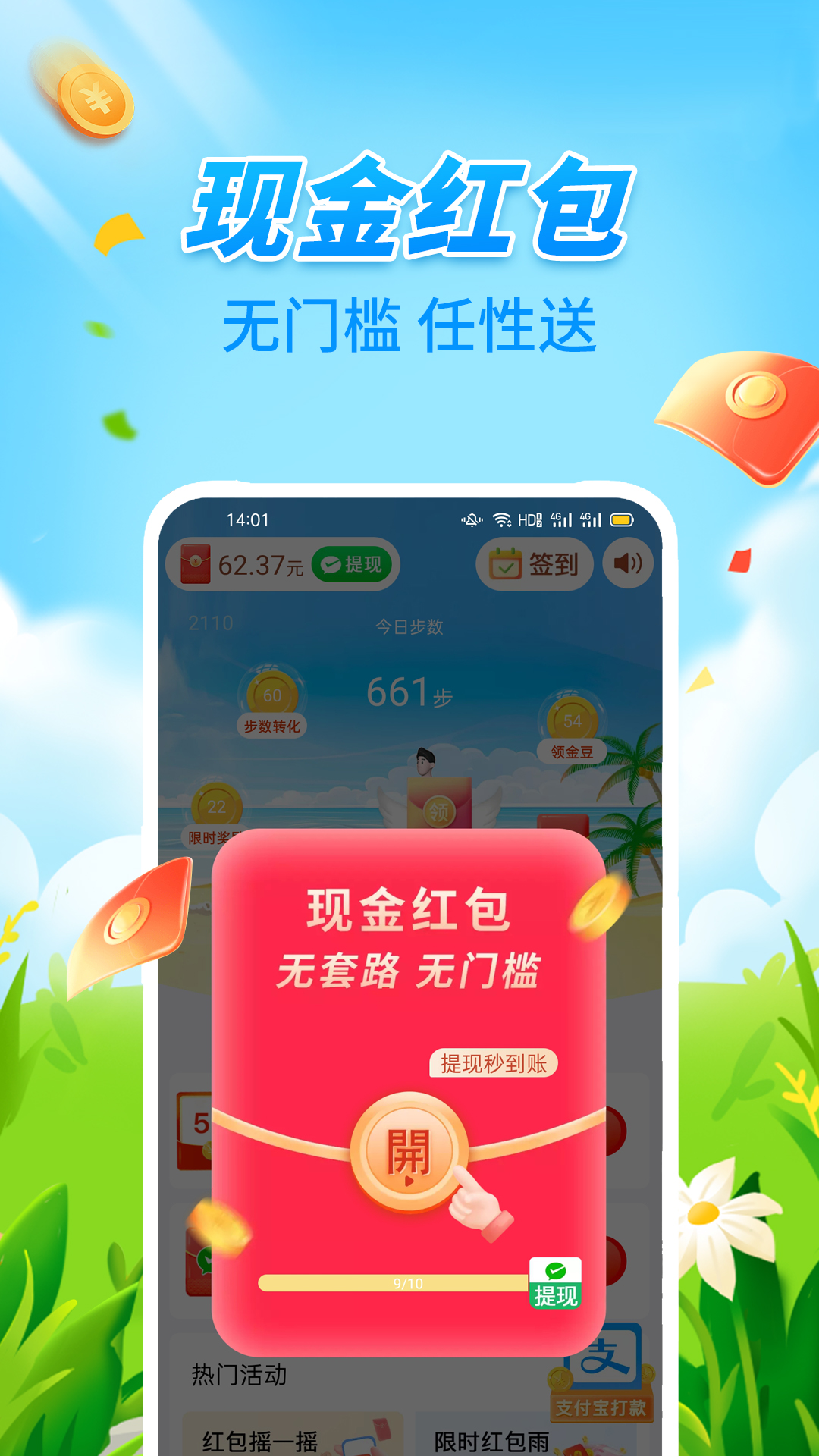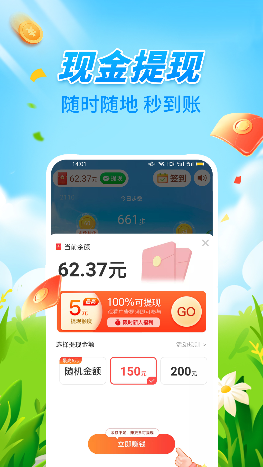 多多走路赚是一款很棒的软件。它具备健康运动计步功能,能让您在运动的同时,通过积累步数来换取红包奖励。而且,这个应用里还有许多趣味游戏,您在玩游戏的过程中就能赚钱哦。这里有多种红包领取活动,轻松简单就能赚到零花钱,赚到的钱可以提现到微信或者支付宝,并且是极速提现,马上就能到账呢。