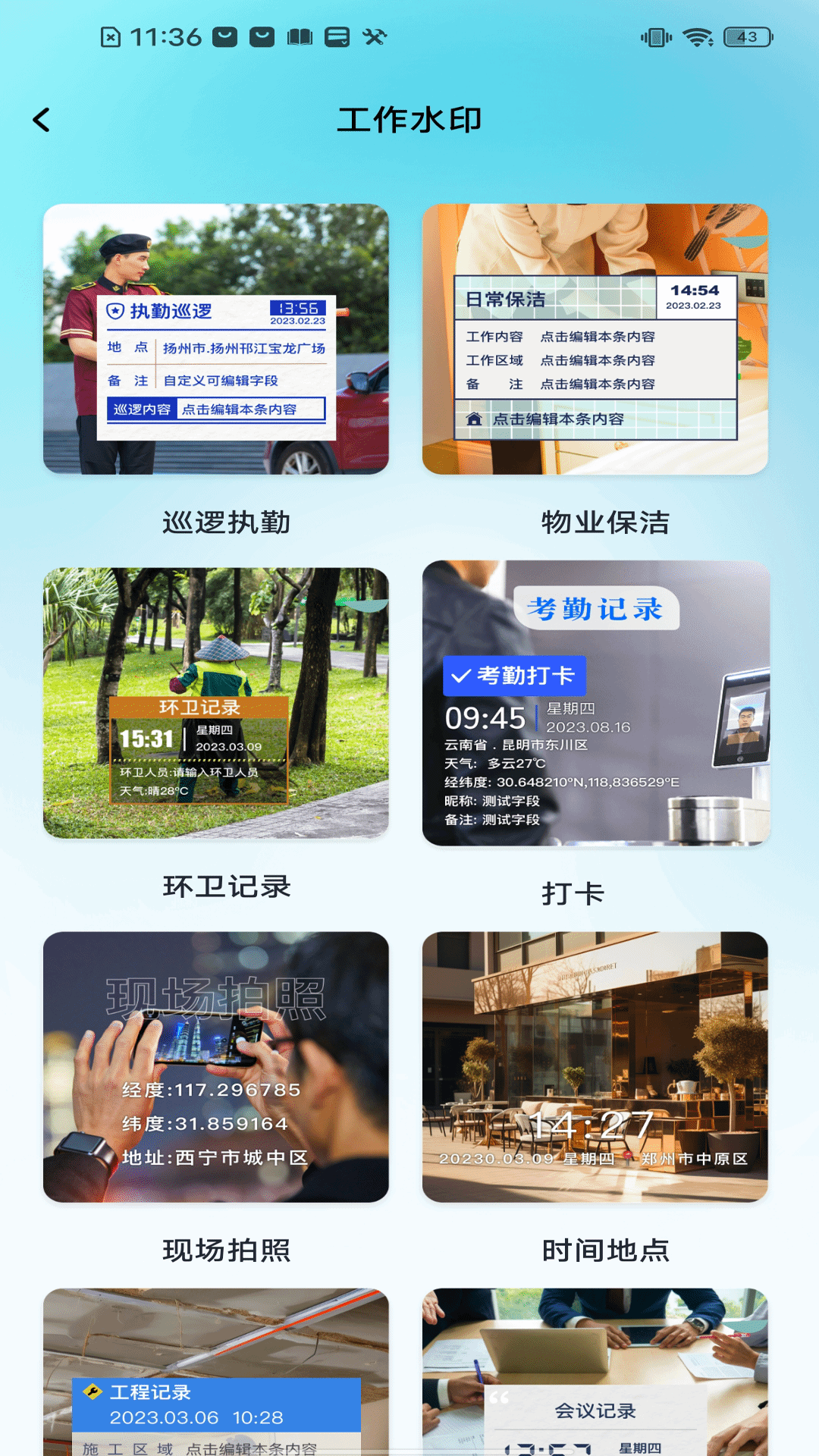 1.工程打卡记录: 专为工程人员设计,记录每一次现场打卡的时间和地点,确保工程进度的准确跟踪。