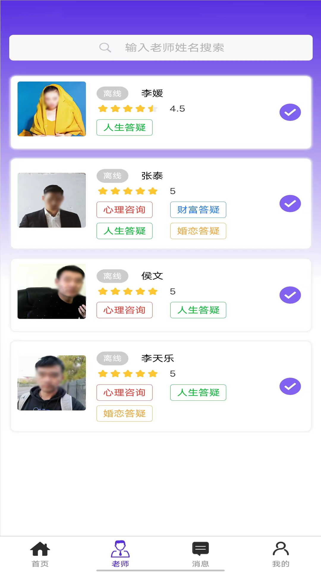 京泰吉APP功能 通过心理详细解析,让你更加了解自己。 【婚姻情感】了解对方是否适合自己。 【心理咨询】为您排忧解难,疏通心理难题。 京泰吉APP特点 真人老师:数百位老师真人在线服务。 1对1咨询:1对1专业咨询服务。 实时沟通:10分钟快速响应,72小时超长服务。 保护隐私:严格保障用户信息及咨询内容。