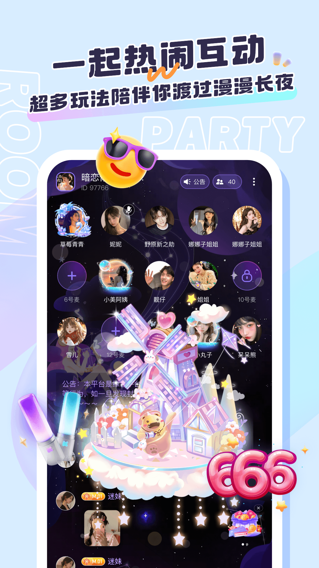 在这里的人们,会凭借声音去洞悉您的情感,领略您独特的魅力。他们通过声音玩游戏、互动、聊天、结交朋友。我们的语音房充满着真实纯粹的声音,每一个人都是真实而实在地存在着。
