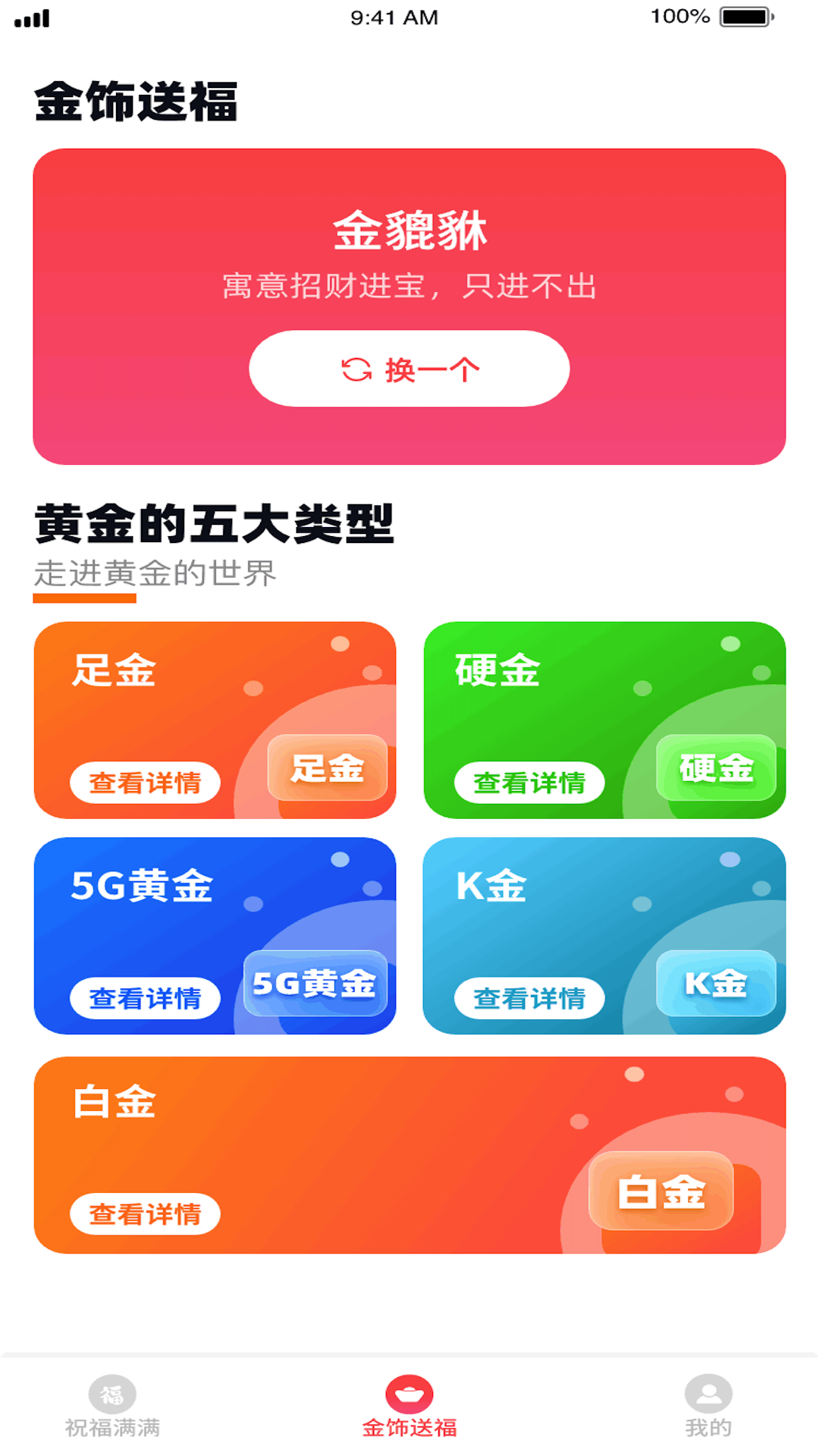 你可以在这里看送不同人群的祝福话语,你还能查看黄金的相关知识等,喜欢的话,快来下载试试吧!