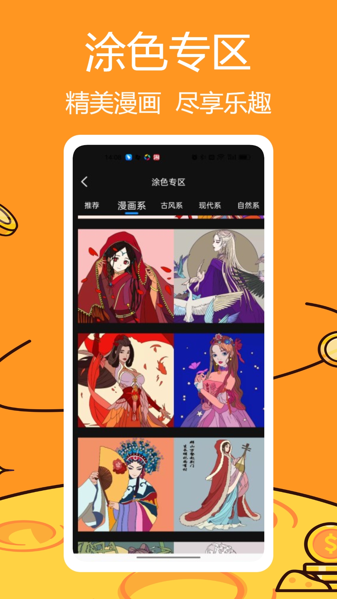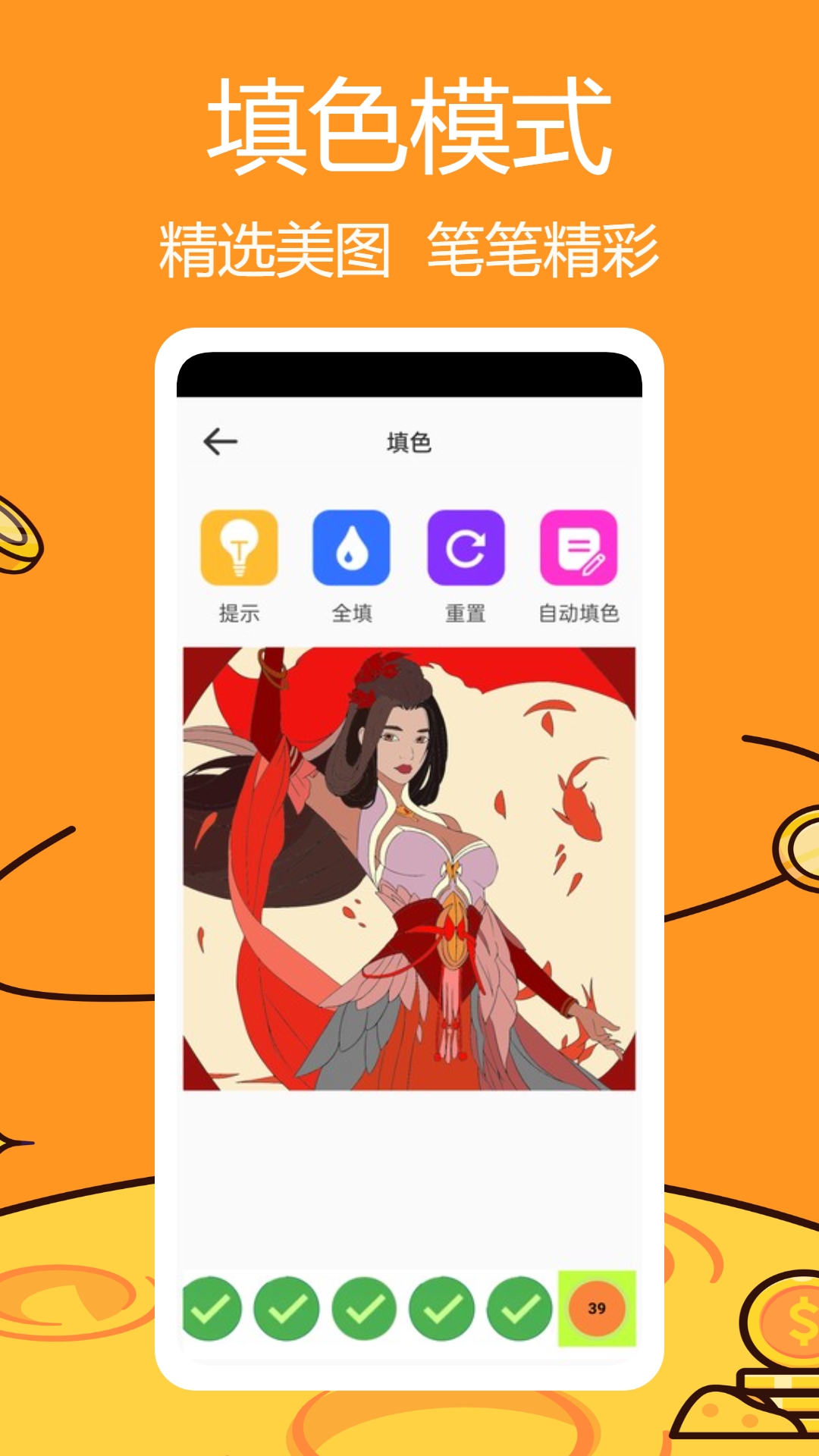 我们是一款模拟画画的涂色软件。不管你是刚接触绘画的新手,还是已经在职的画师,都能通过本应用轻松惬意地进行创作。