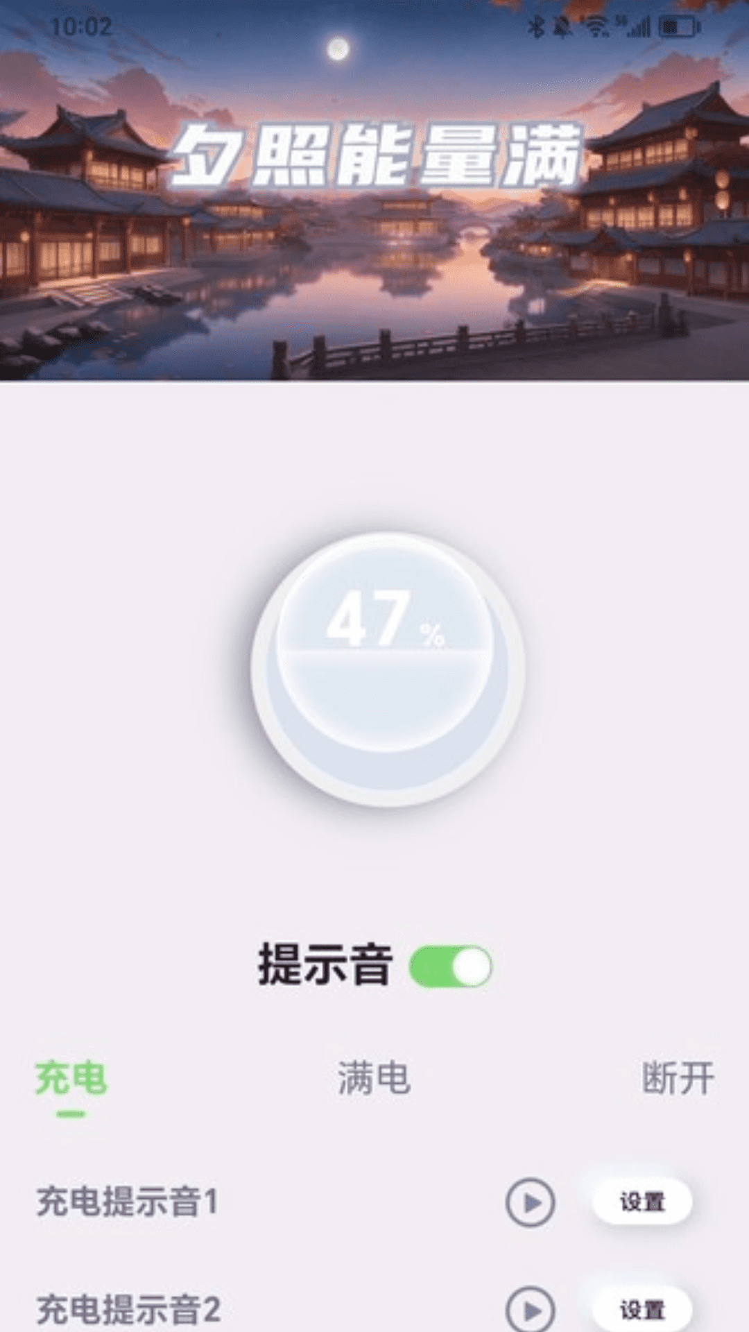 月夕充电APP拥有精美的视觉设计,使得您手机的电量显示告别单调,充满了独特的魅力。并且,我们精心挑选了多种多样的充电音效,每一次充电时,这些音效就如同一场美妙的听觉盛宴,为您的充电时刻渲染出别样的氛围。