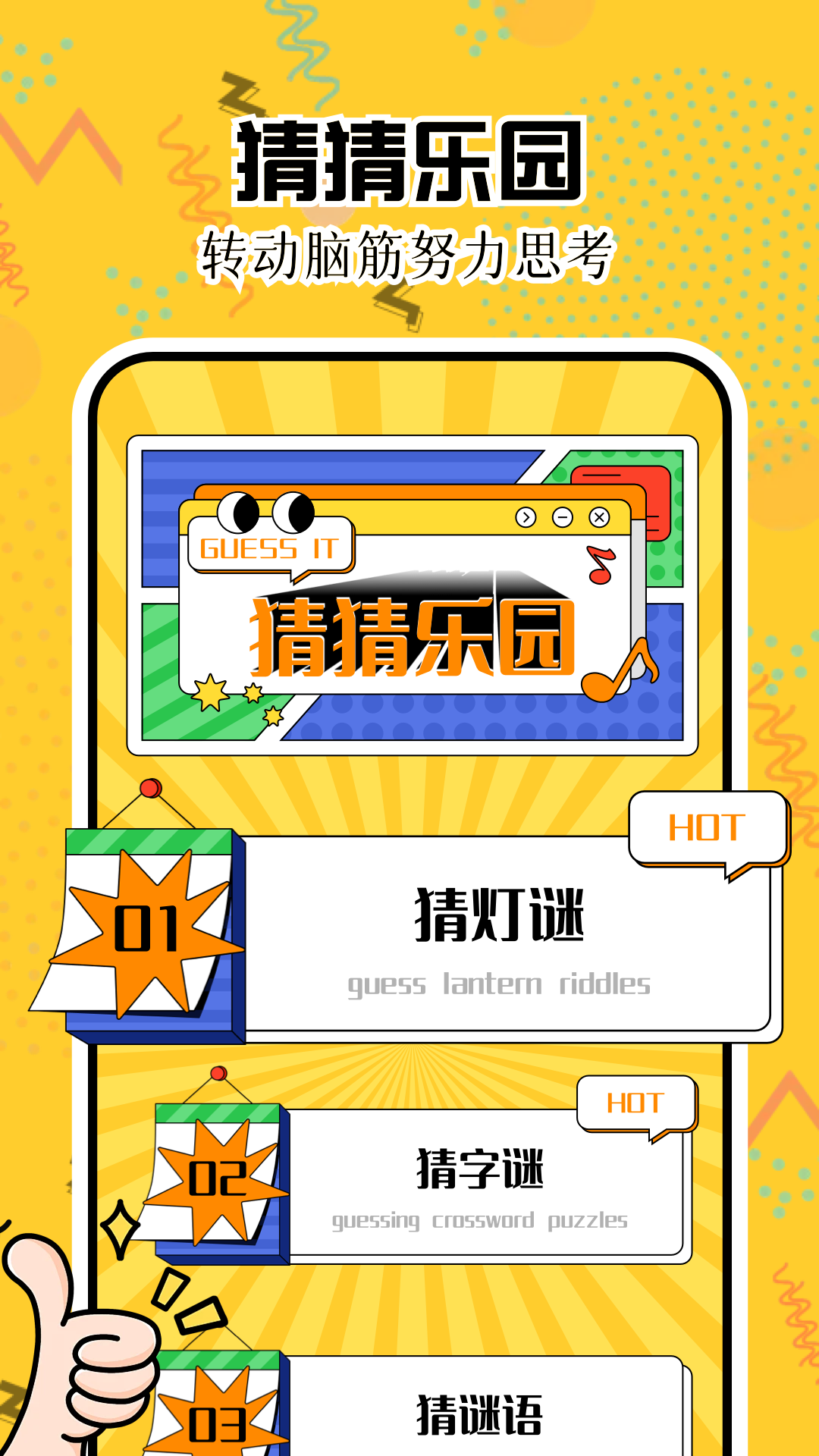 在“猜猜乐园”里,你可以尽情转动脑筋去思考。这里有充满智慧的猜谜语,富有文化底蕴的猜字谜,以及充满节日氛围的猜灯谜等,让你沉浸其中,享受思考的乐趣。