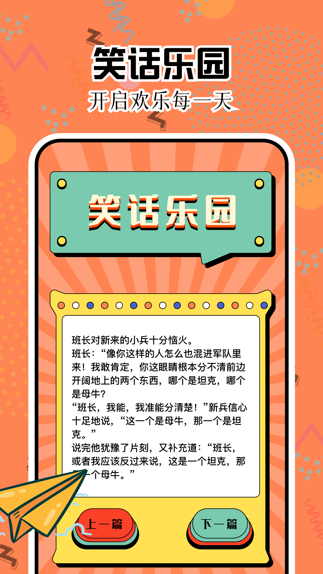 每天都能够开启一场欢乐之旅,走进“笑话乐园”,在这里,笑声会充满你生活的每个角落。