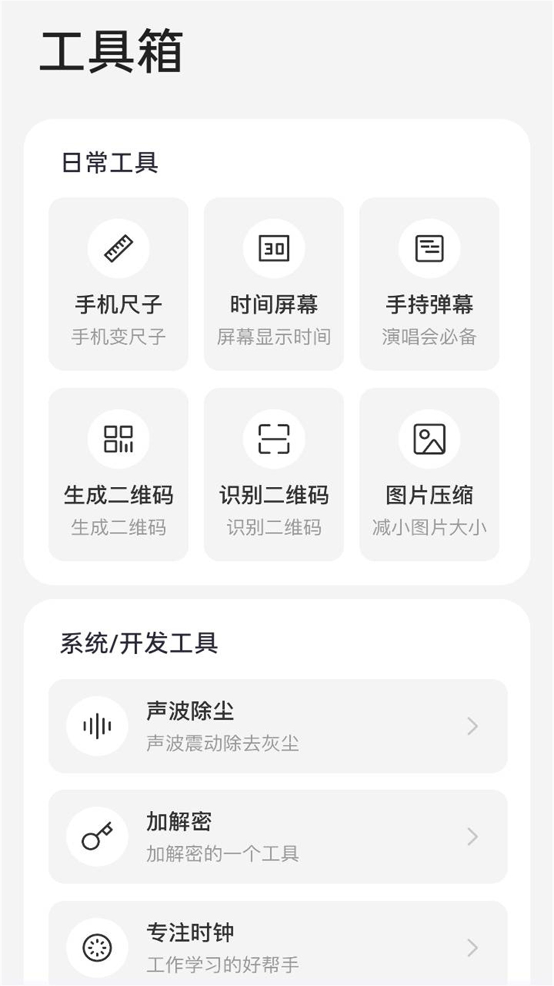 手机应用的工具箱界面,其中包含了多个实用的工具选项。