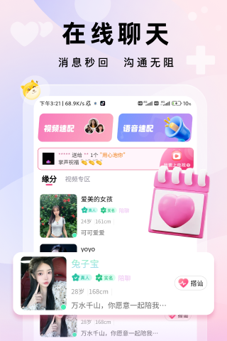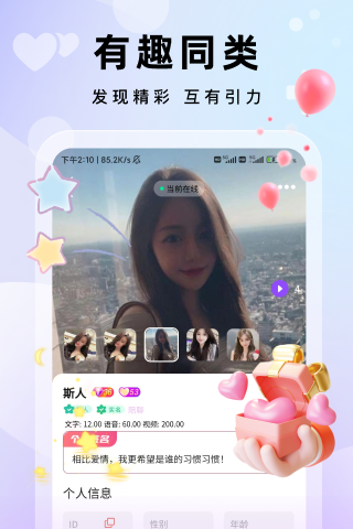 亲聊,这是一款实实在在的移动社交应用。它有着全新的界面设计,这里汇聚着海量有趣且真实的用户,能给你更为出色的交友感受!它会在一天24小时不间断地为你展示当下处于在线状态的小伙伴,让寂寞从此远离你。在这里,你可以尽情享受多种聊天方式,无论是文字还是图片,都能随心选择。