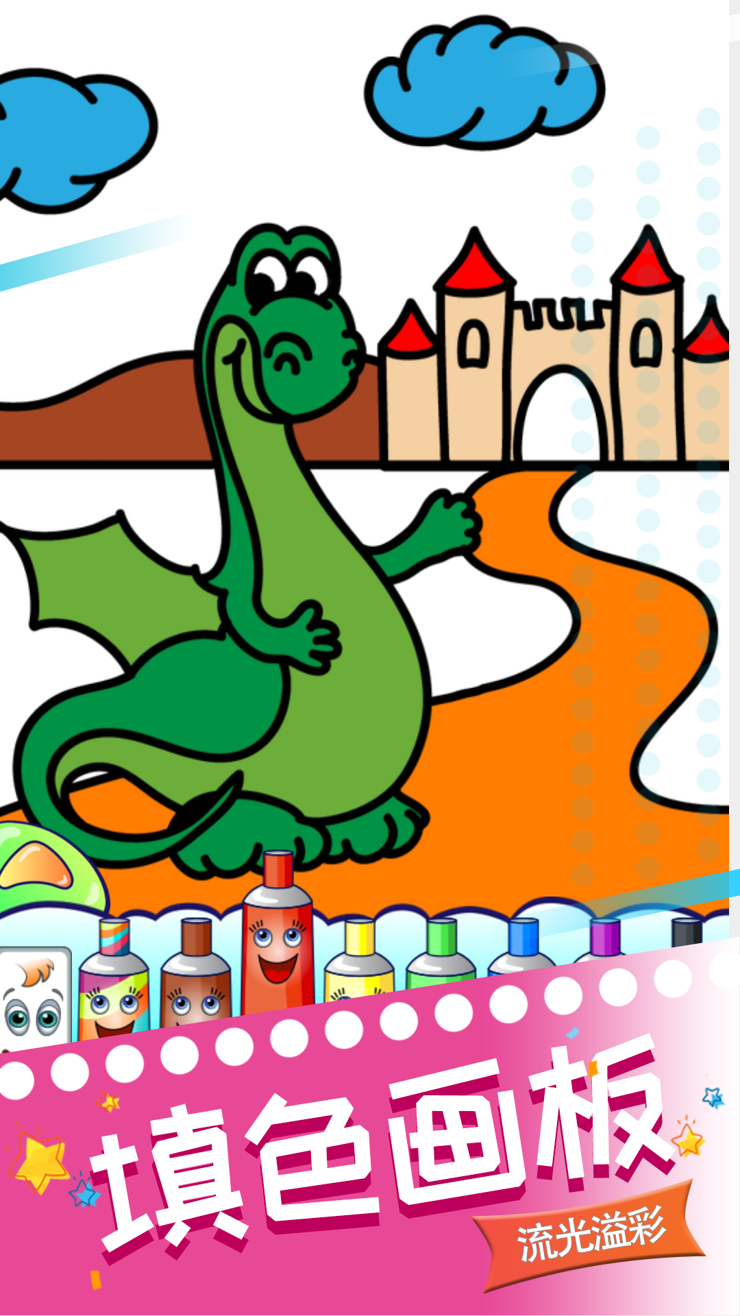 产品提供了涂鸦模式、填色模式、填块模式等多种模式,适合处于不同成长阶段的小朋友。相较于让孩子观看喜羊羊、熊出没、黑猫警长、葫芦娃、超级飞侠、铠甲勇士、猪猪侠、大头儿子、奥特曼、芭比公主、小魔仙、爆裂飞车、魔幻车神、猎车兽魂、汤姆猫这些动漫电视,让宝宝参与到这个学习教育游戏中,能给孩子带来更多的教育效果。让我们和宝宝一起坐上儿童宝宝巴士,让可爱的莉比小公主、快乐小王子在这个画画世界里健康快乐地成长吧。