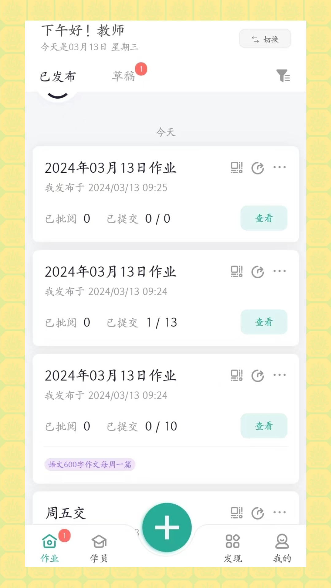 家庭作业发布、查阅、批改、打卡小工具,教师家长的好帮手,支持图文、视频、语音、文件上传,简单易操作。