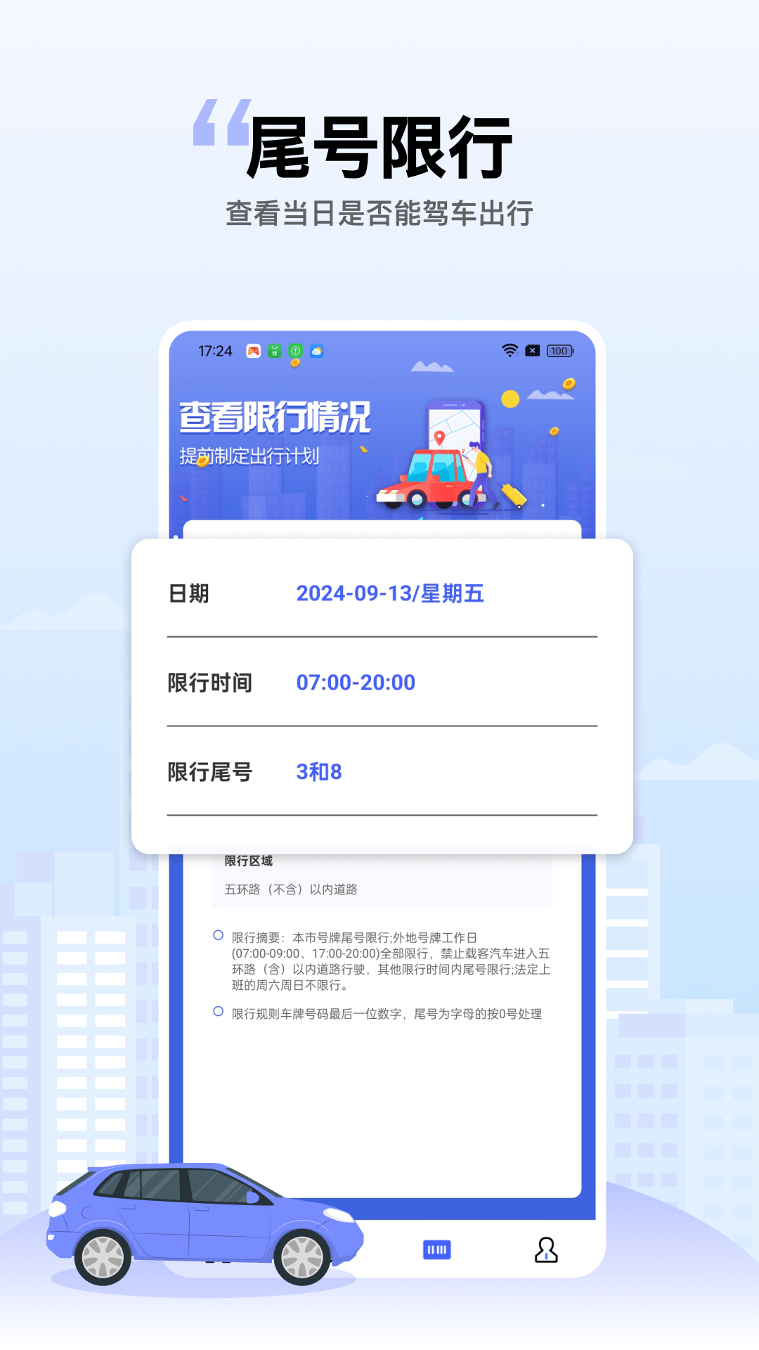 【尾号限行】支持全国车辆限行城市查询和限行日期查询。