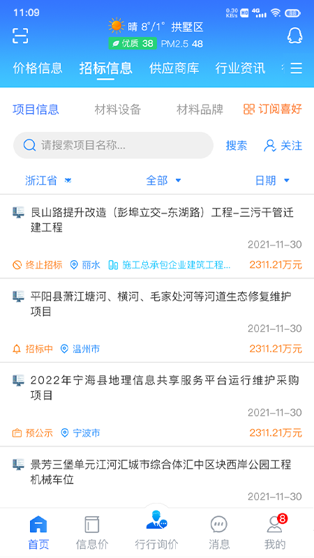 供应商可订阅交易中心的招标项目信息,这样就能实时获取商机,并且能够看到项目内清单材料数量等详细信息。