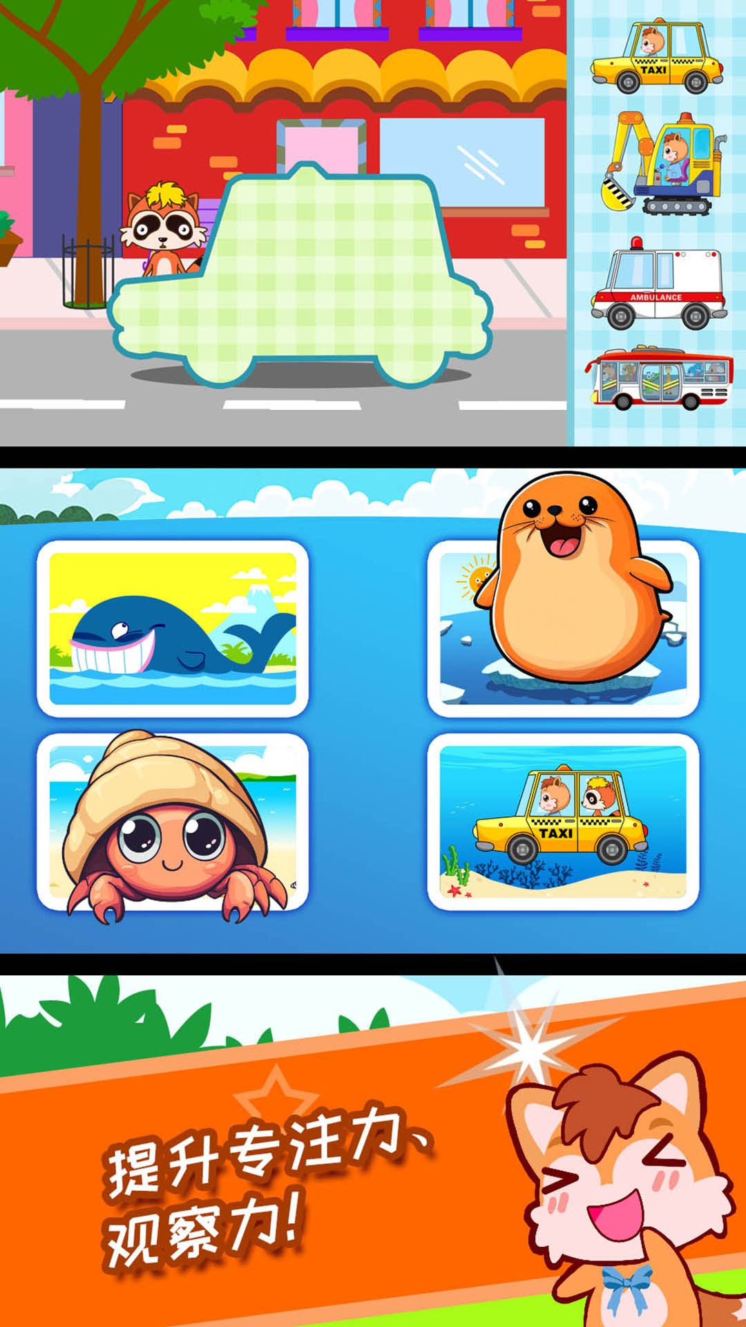 想让宝贝的洞察力和判断能力出类拔萃吗?不妨试试《宝宝幼教学配对》哦,超强大脑要从小开始培养呢。在这个APP里,宝贝们可以通过帮小动物找妈妈、进行食物配对、汽车配对、动物生活环境配对、动物身体配对以及形状配对等趣味活动,在玩乐中轻松掌握各类日常小常识,进而提升宝贝们的观察力。