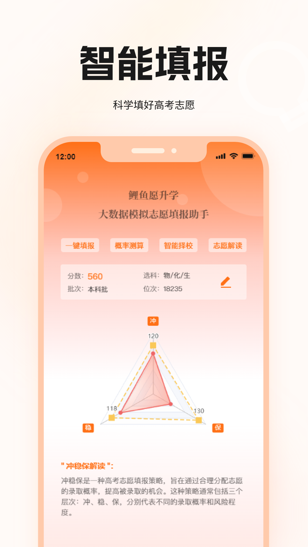 鲤鱼愿升学是一个专门面向高考生的志愿填报专业指导平台。它运用智能推荐算法,能够为考生推荐录取率较高的院校。通过这个平台,考生可以科学地填报志愿,有效降低填报风险,就像是搭乘上了高考直通车一样。