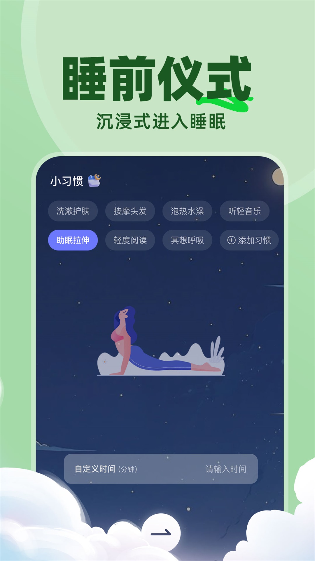 用户可以根据自己的喜好和需求,自定义睡前仪式内容,如阅读、冥想、拉伸等。