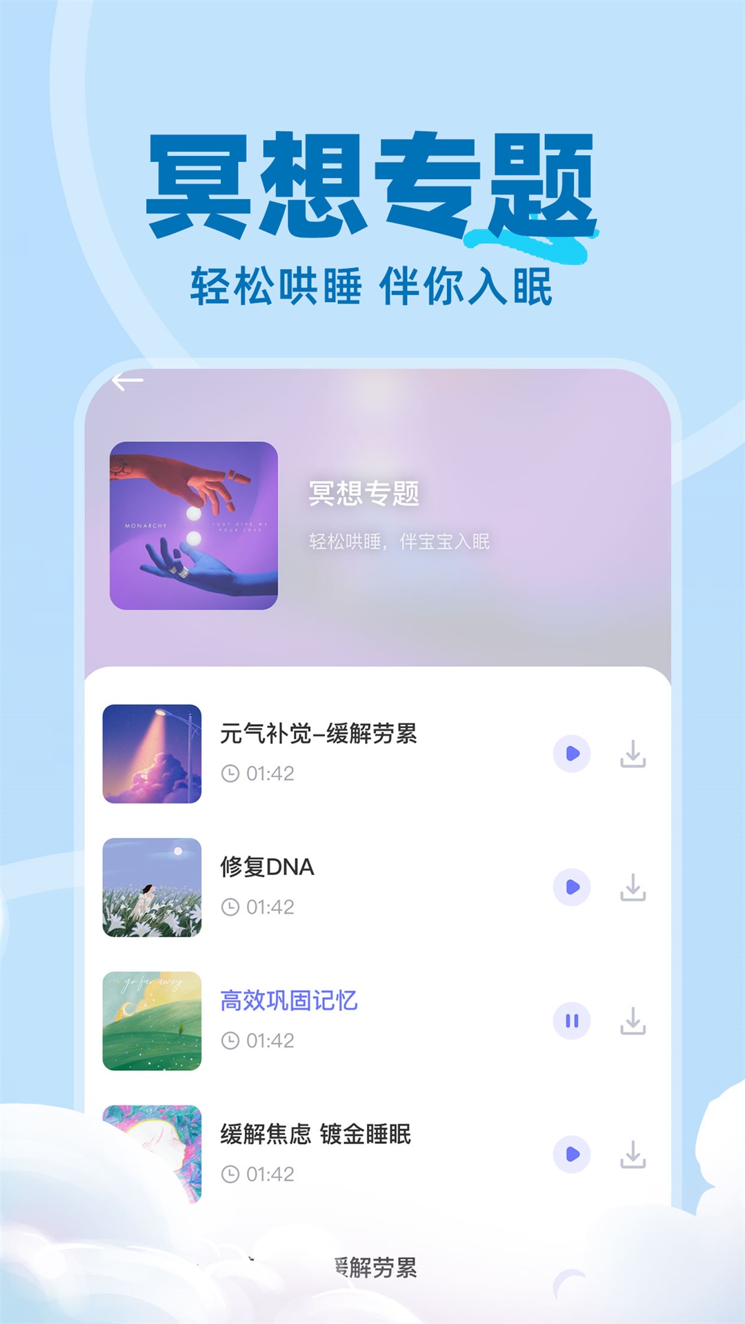 冥想音乐:精选冥想背景音乐,营造专注、放松的冥想氛围,帮助用户更好地沉浸于冥想之中。