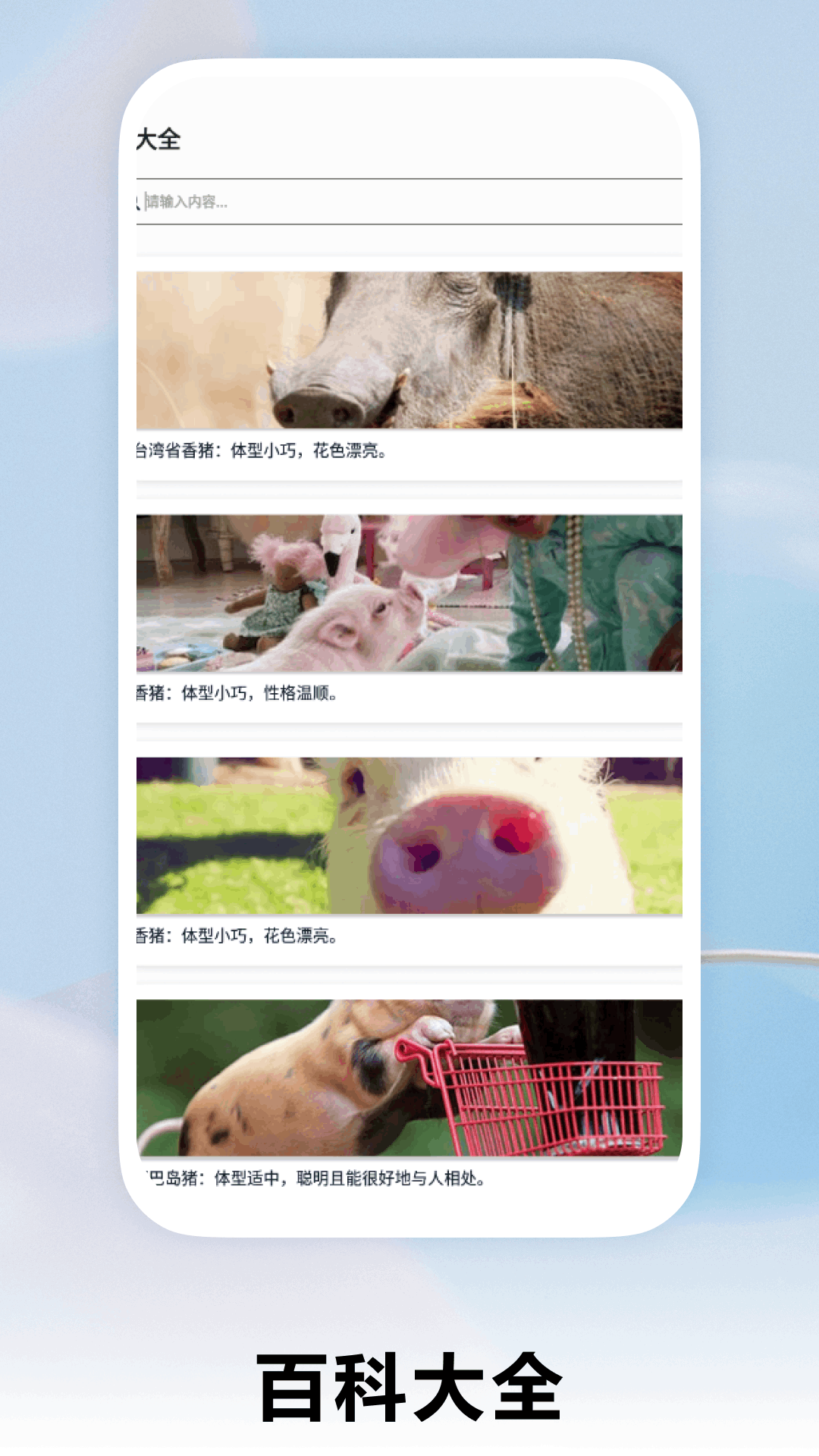 这是一款专门面向养猪人士、养猪爱好者以及对养猪感兴趣人群打造的APP。在这个APP里,你能获取到丰富的养猪科普知识,还能看到各种实用的养猪攻略。它涵盖了各类猪类百科知识,无论是猪的品种、习性,还是养殖要点等都能在这里找到答案。此外,APP中还包含有超级可爱的猪猪壁纸,可以满足用户对猪猪的喜爱之情。而且,它还具备拍照识图功能,方便用户随时随地了解更多关于猪的信息。