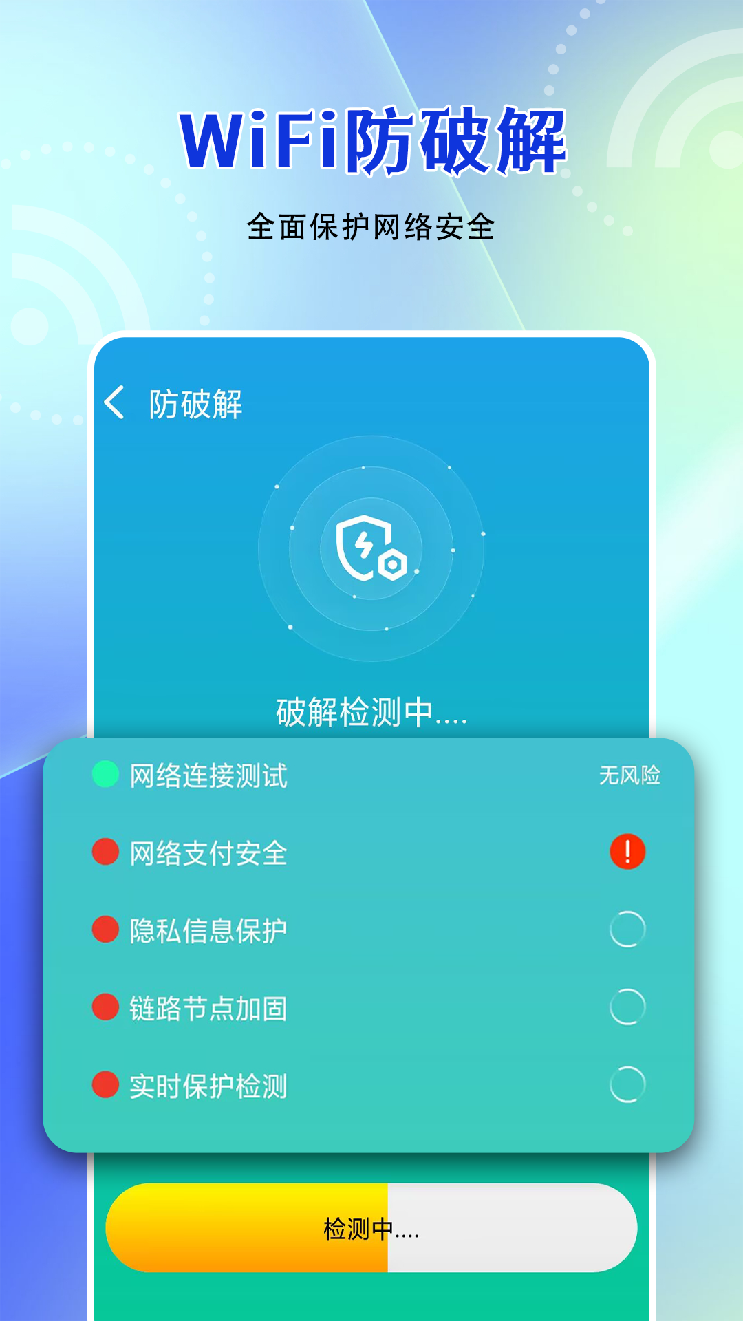 全方位、无死角检测,杜绝网络监听和杜绝木马植入,为您上网保驾护航。