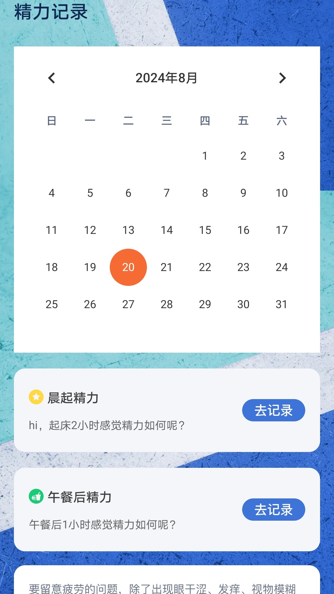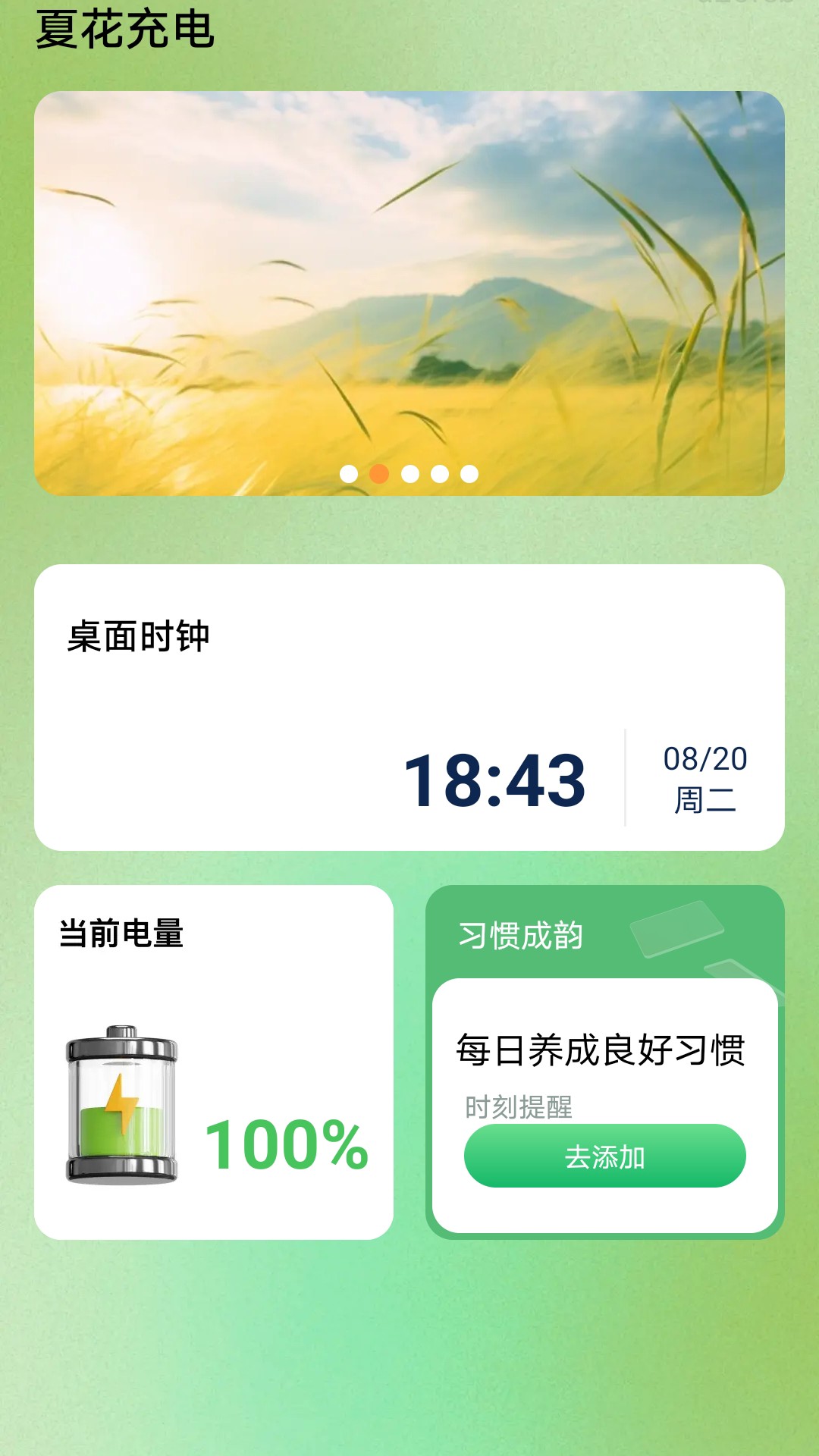 在夏花充电软件中,习惯记录功能就像是你的成长伙伴。它能精准地捕捉你生活中的每一个积极习惯,无论是每天早起阅读、坚持锻炼,还是定期学习新技能。通过详细的记录,你可以清晰地看到自己的进步轨迹,见证每一个小习惯如何逐渐累积成巨大的改变。它会激励你不断坚持,让优秀成为一种习惯。精力记录为你贴心地记录下不同时刻的精力状态。从清晨的活力满满到午后的些许疲惫,再到晚上的重新振作或逐渐放松。你可以随时记录自己的精力变化,了解哪些活动或时间段让你精力充沛,哪些又会让你感到疲惫。从而更好地调整生活节奏,合理安排任务,让自己始终保持高效的状态。