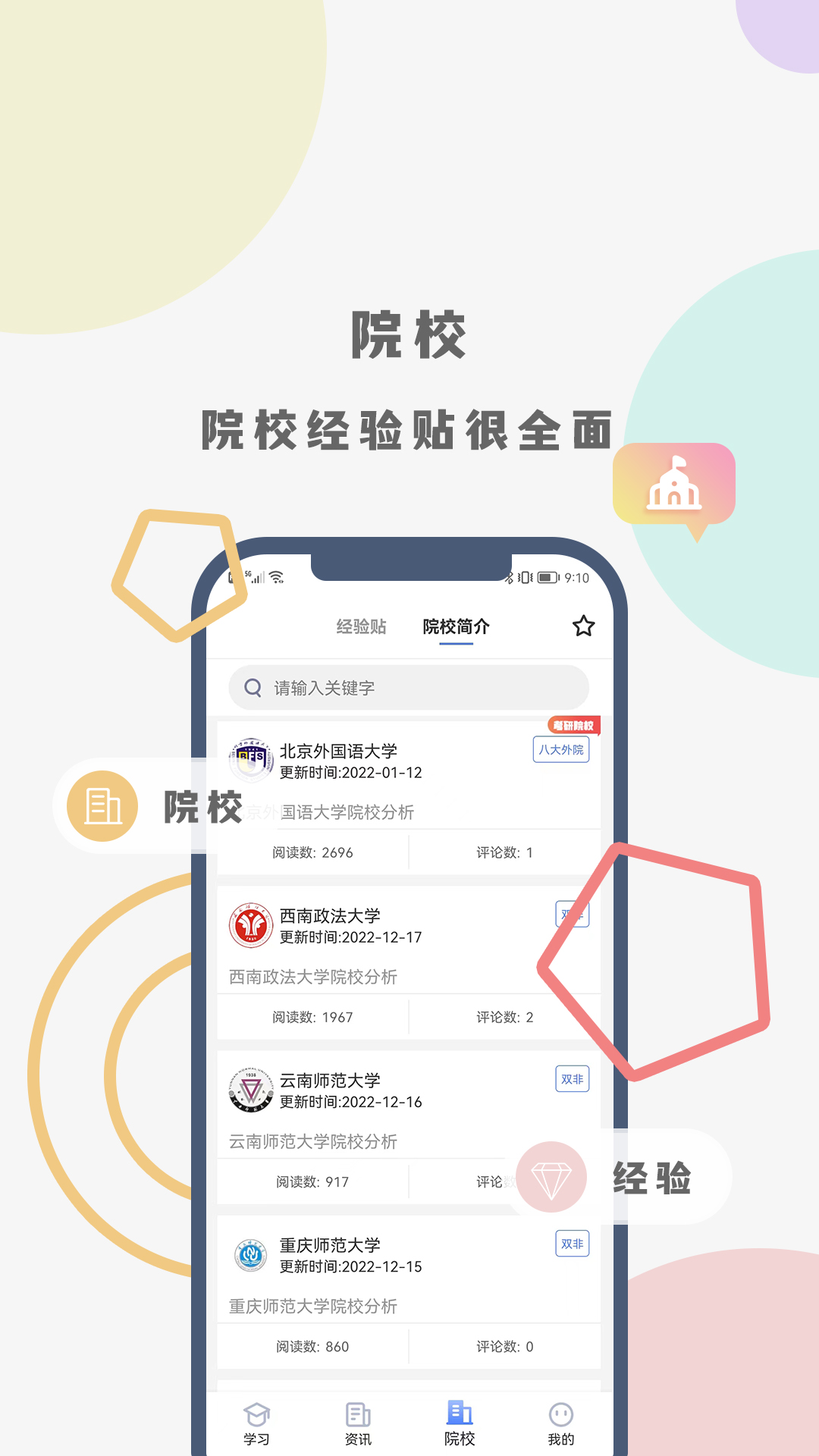 这里包含各院校的简介、上岸学长学姐分享的经验贴以及当下的考研资讯热点,这些信息能够助力考生更好地进行择校和备考规划。