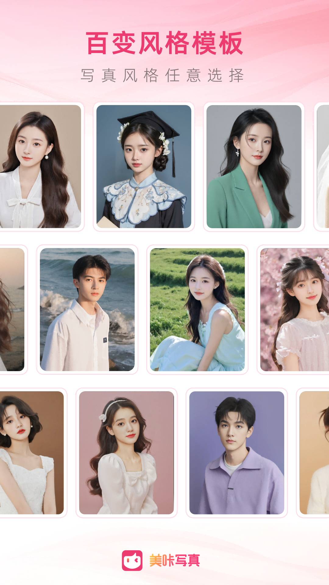 美咔写真,这是一款全新的AI美颜写真相机app,它能为你打造个性专属的形象照哦。这里有各种各样的模板可供挑选,你若想感受唯美古风,来一场穿越时空的奇妙之旅,或者想化身职场精英,展现出优雅知性的魅力,它都能满足你。你可以自由地尝试无数种风格,尽情演绎自己那百变的人生。