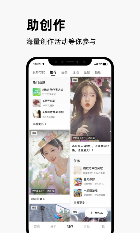 【创作助力】提供丰富的优质任务、热门活动以及话题推荐,能让您及时捕捉当下的创作热点。